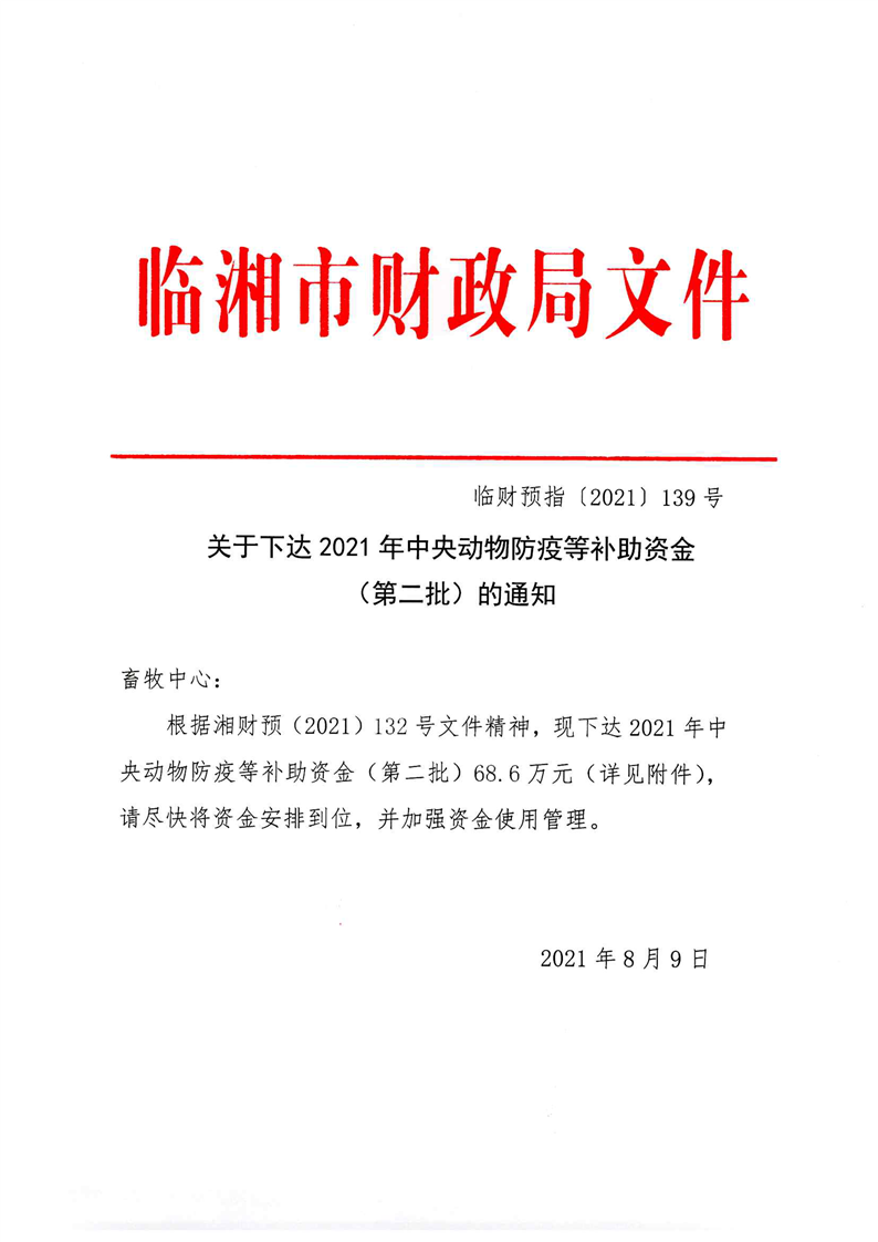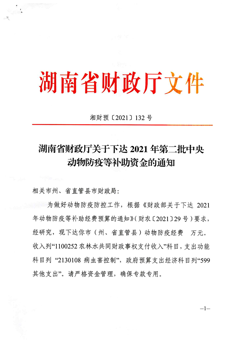 关于下达2021年第二批中央动物防疫等补助资金的通知