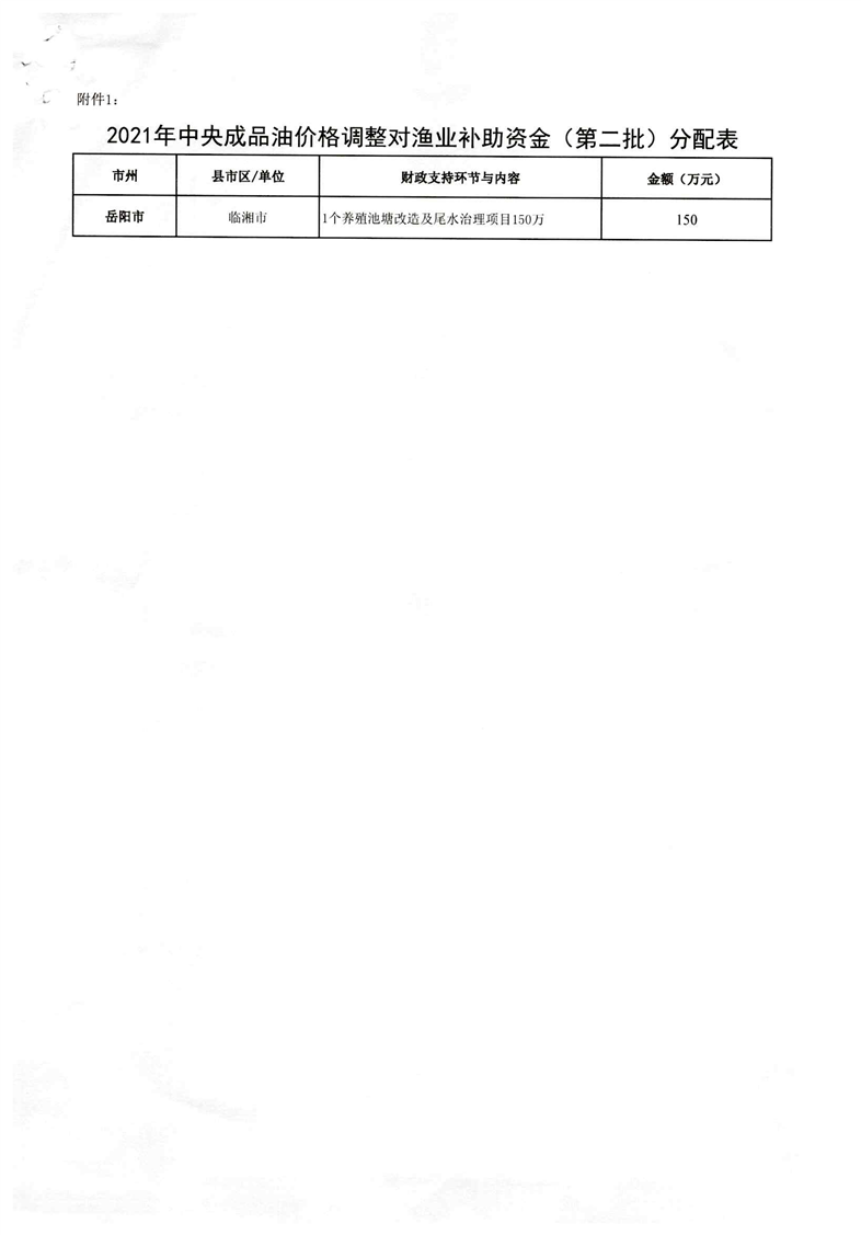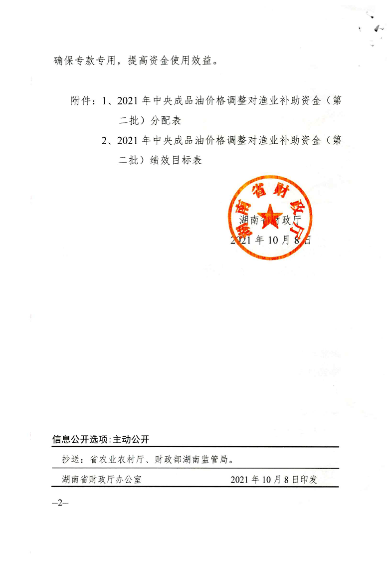 关于下达2021年成品油价格调整对渔业补助资金(第二批)的通知