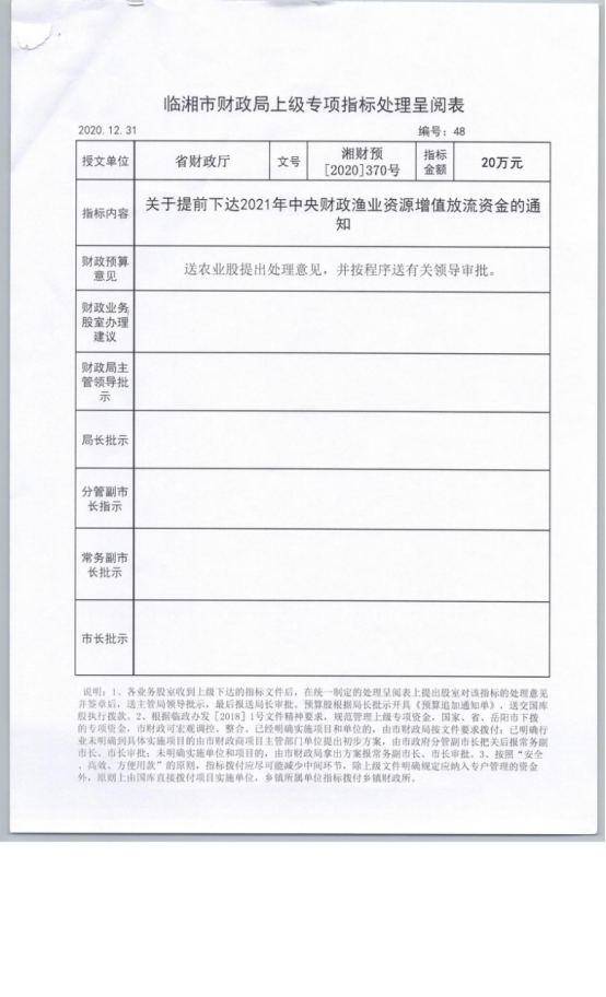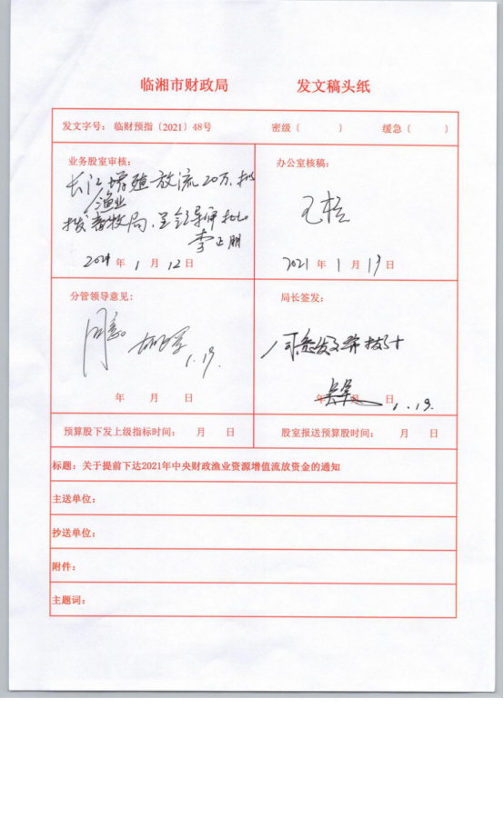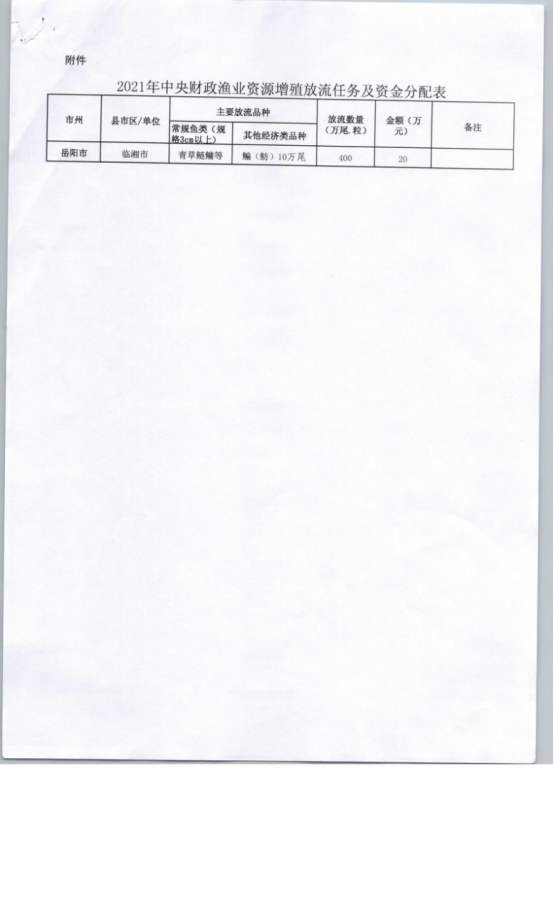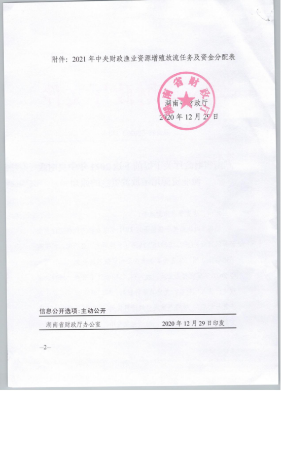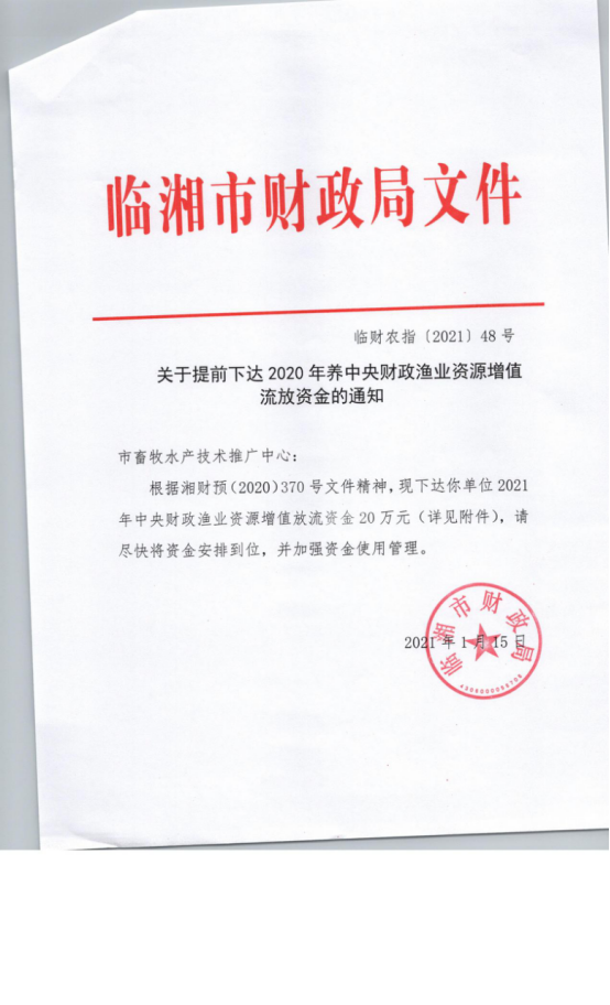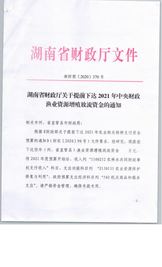 关于提前下达2021年中央财政渔业资源增殖放流资金的通知