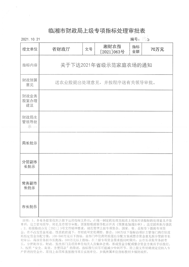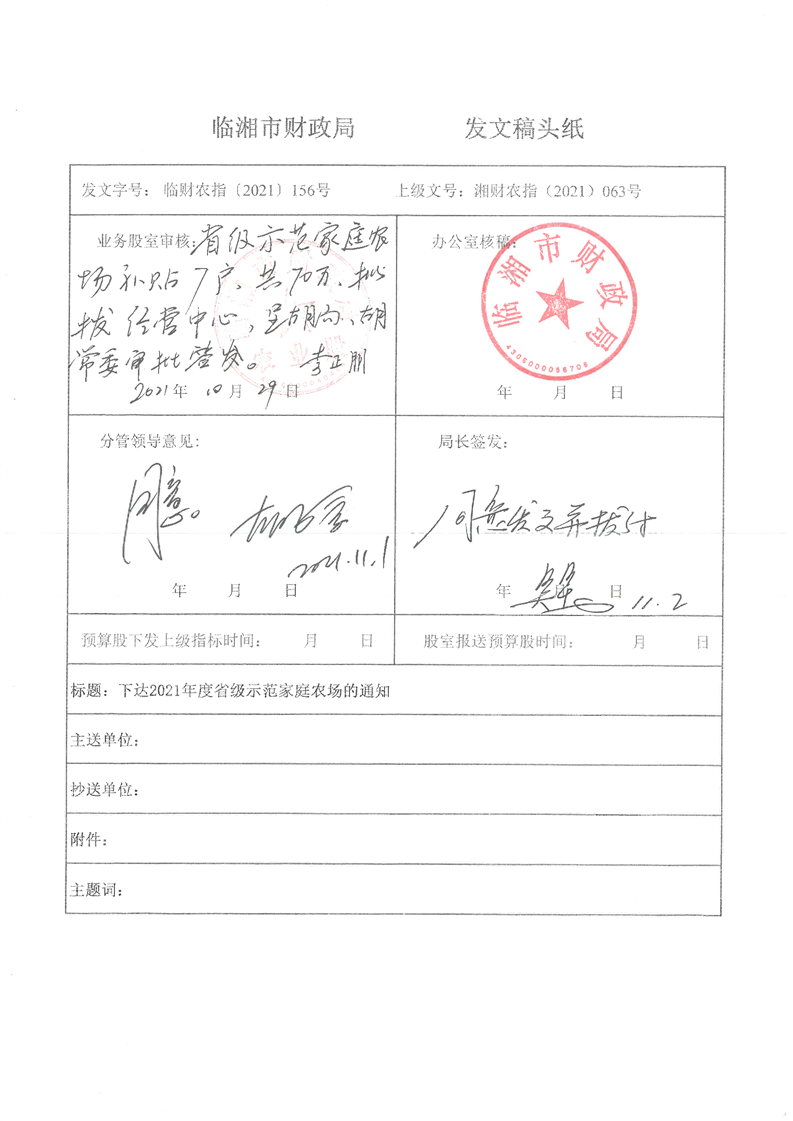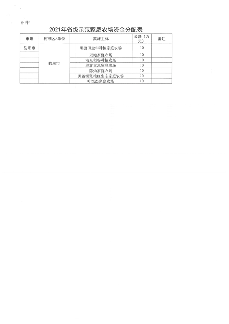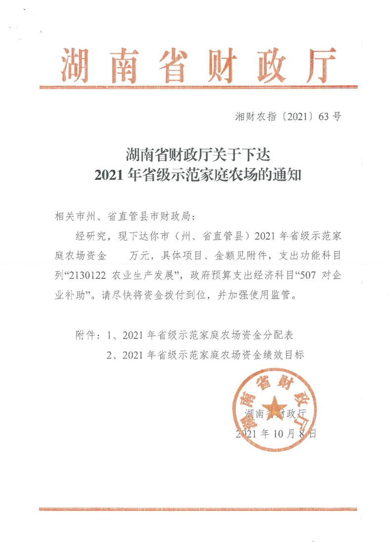 关于下达2021年省级示范家庭农场的通知 湘财农指【2021】63号