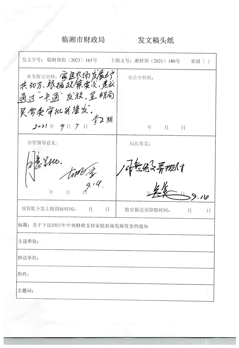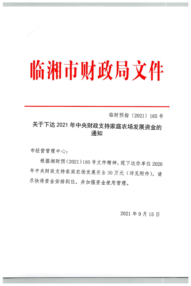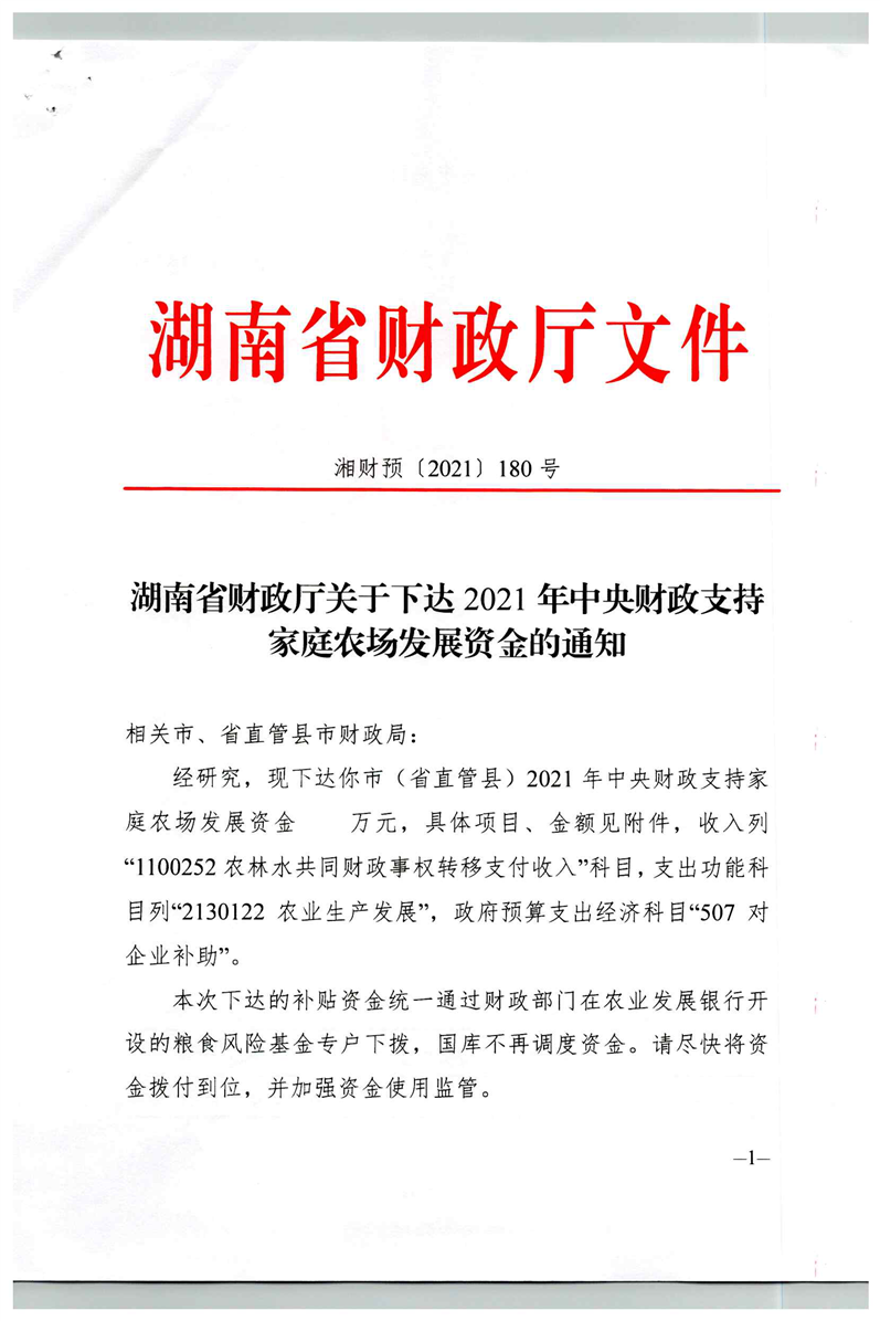 关于下达2021年中央财政支持家庭农场发展资金的通知