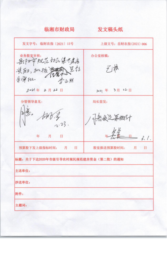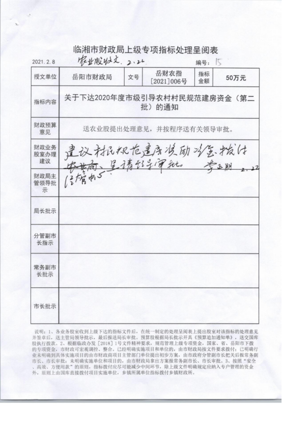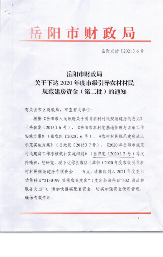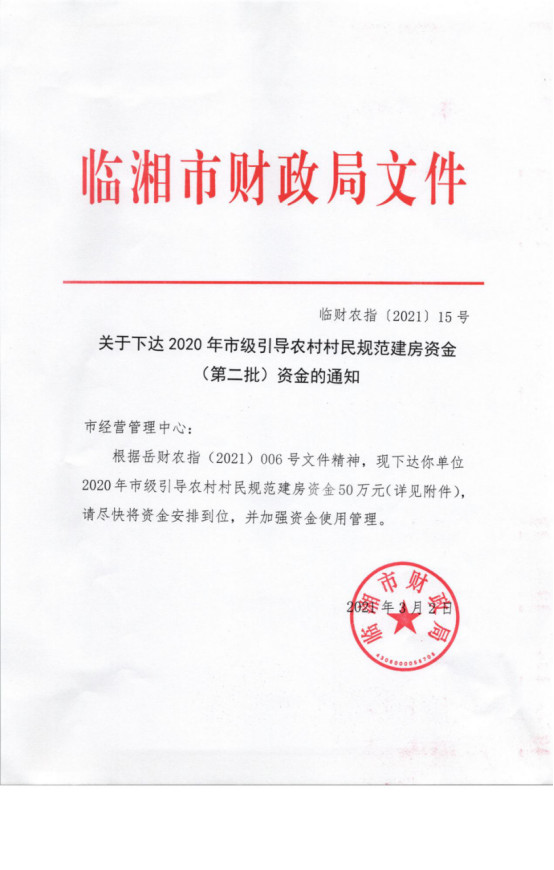 关于下达2020年度市级引导农村村民规范建房资金(第二批)的通知