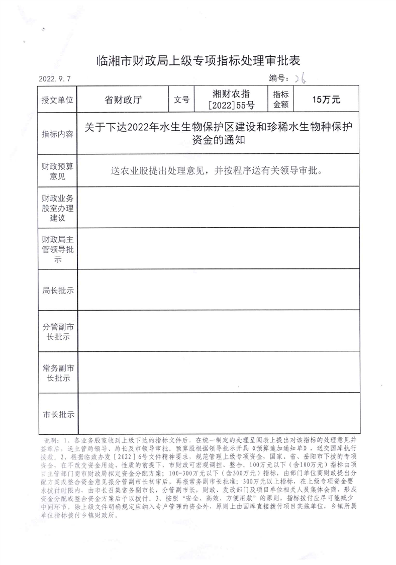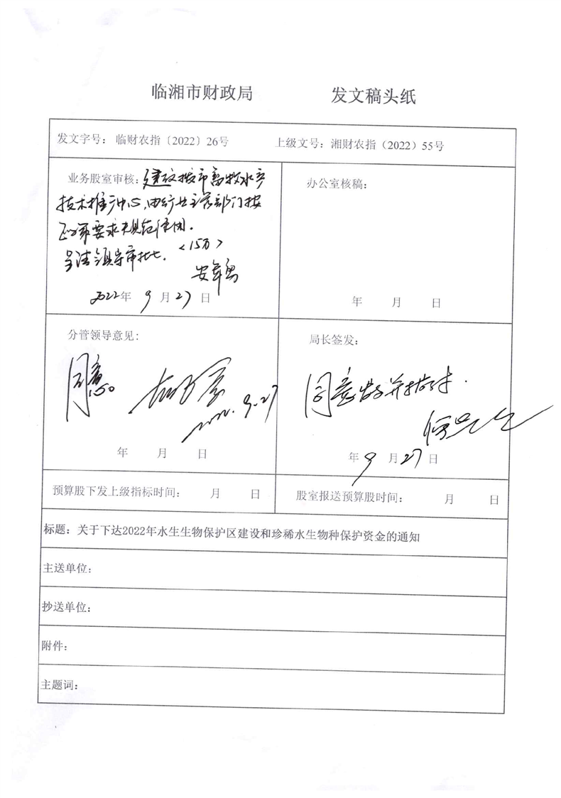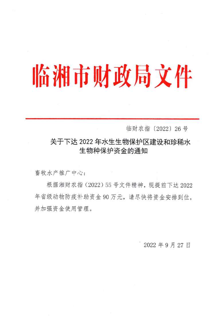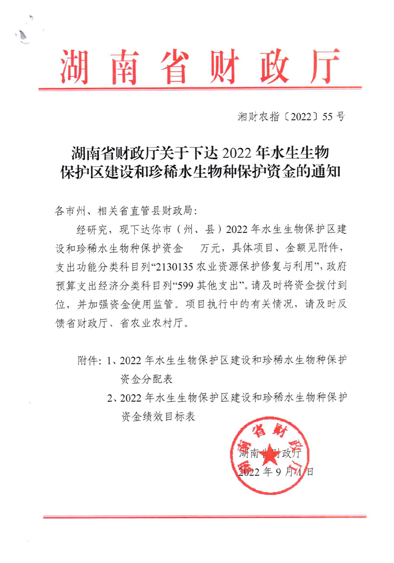 关于下达2022年水生生物保护区建设和珍惜水生物种保护资金的通知
