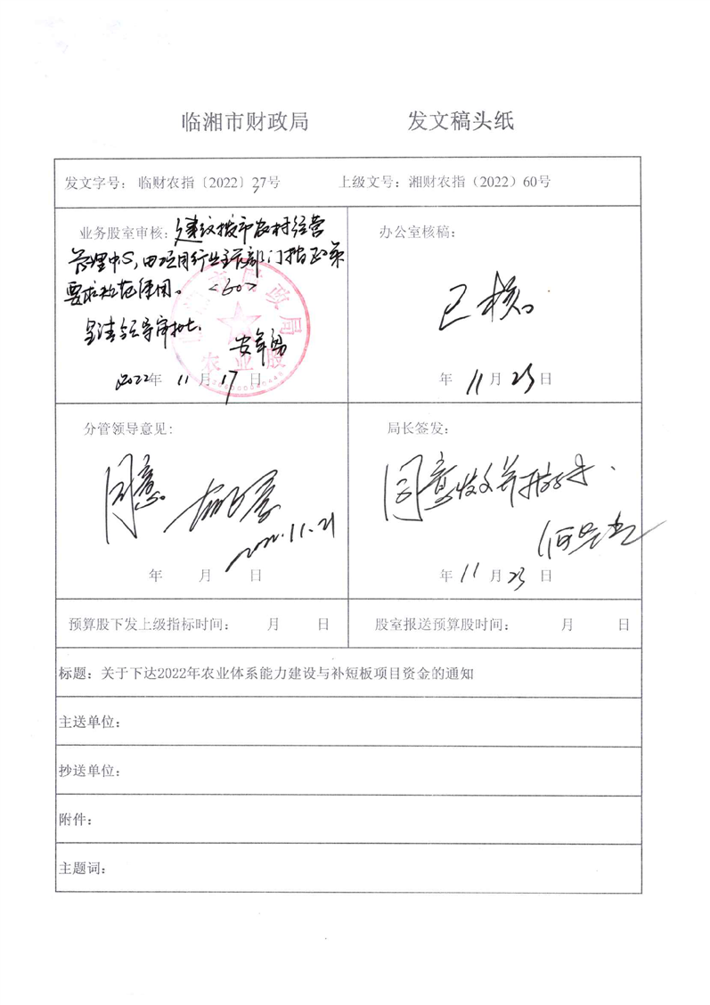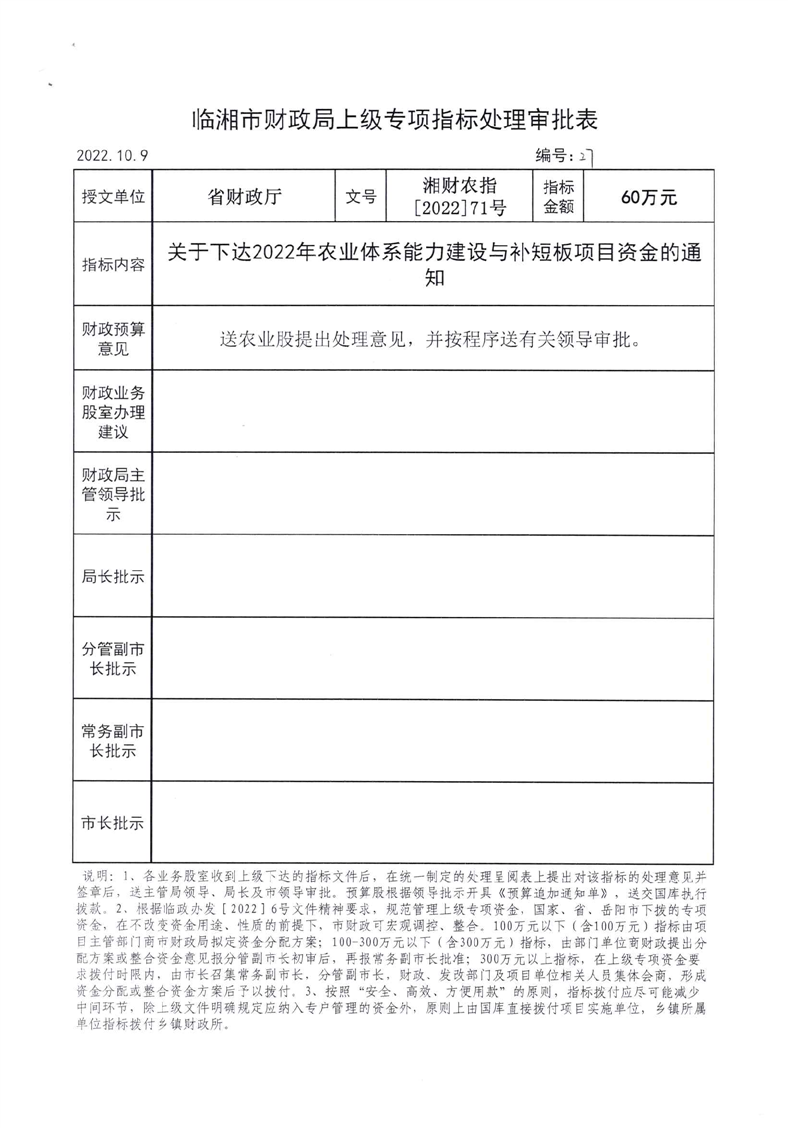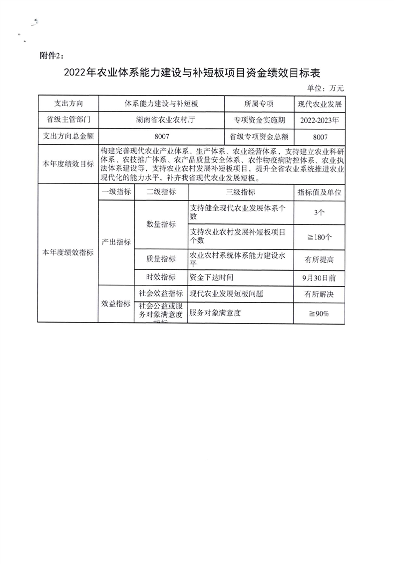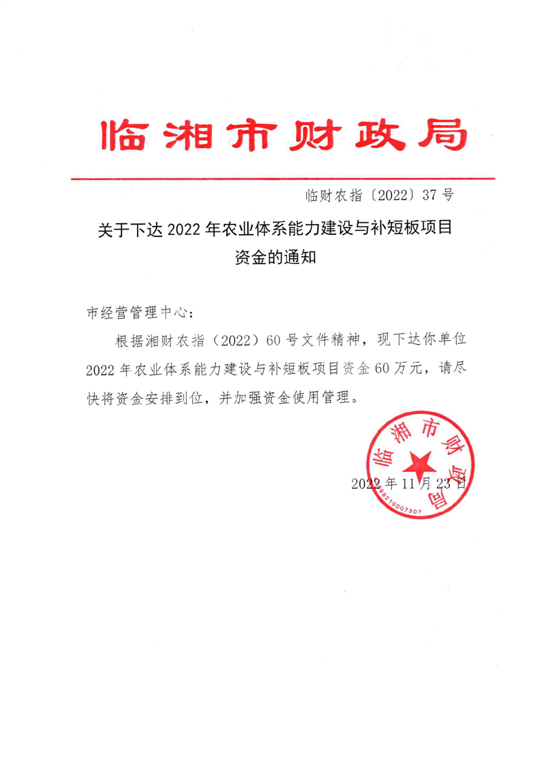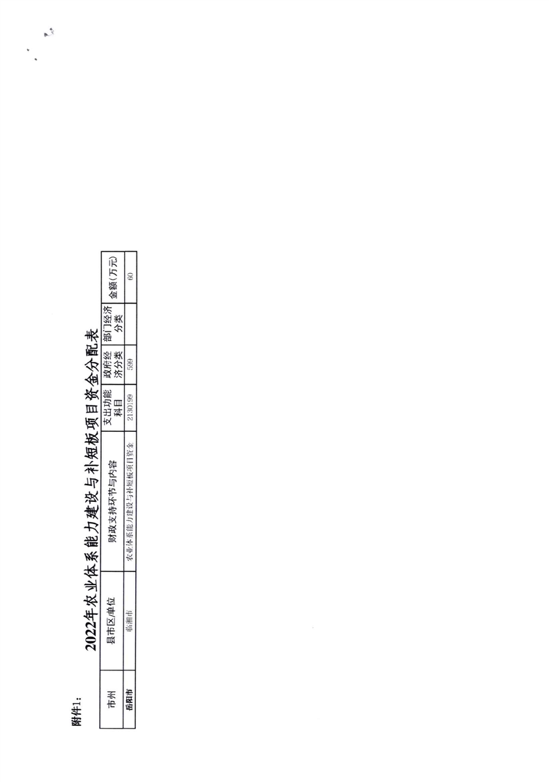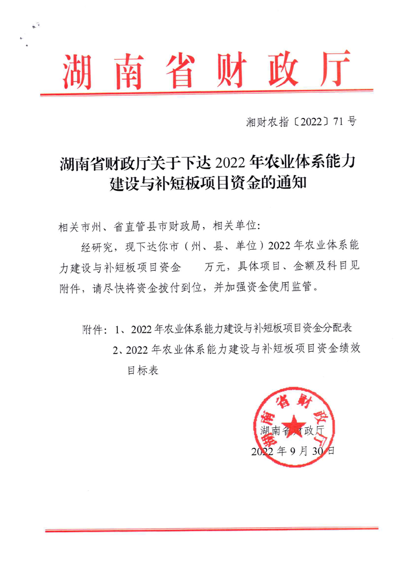 关于下达2022年农业体系能力建设与补短板项目资金的通知