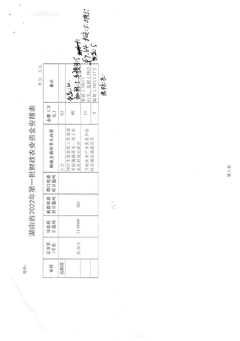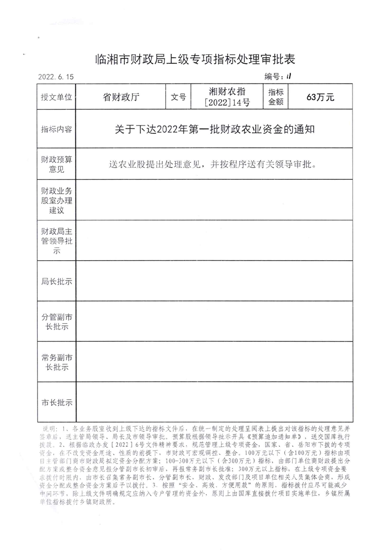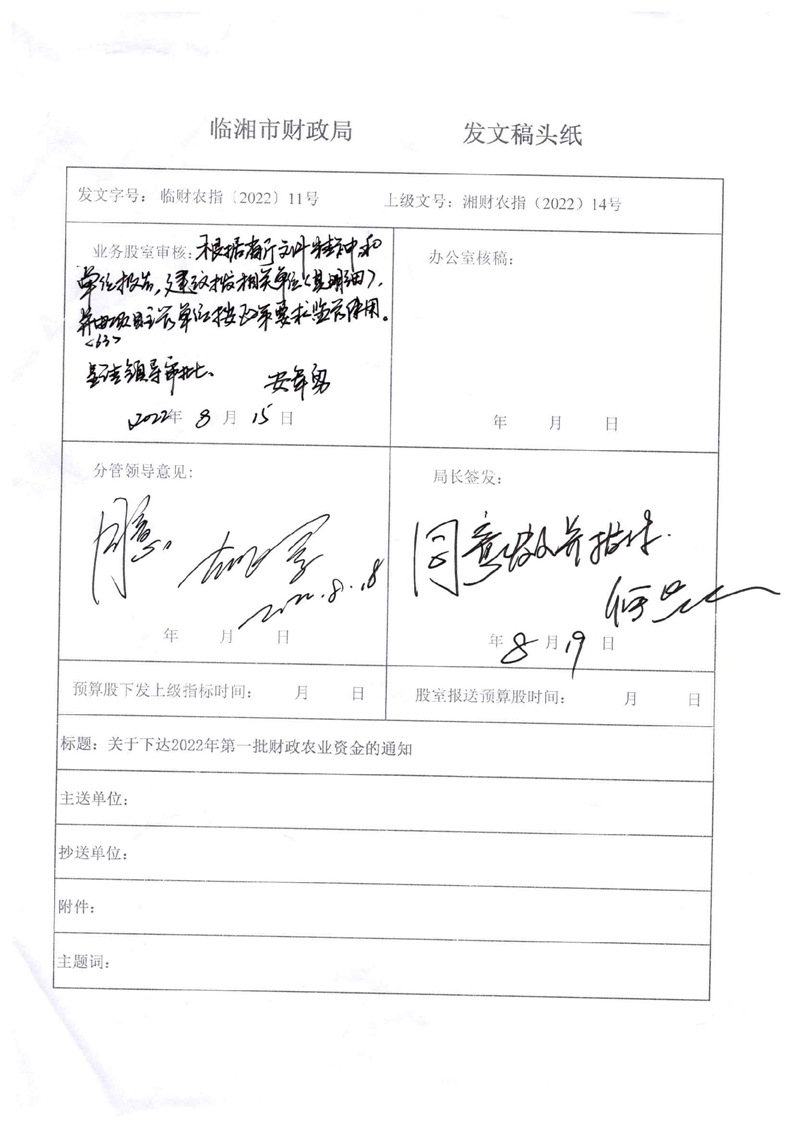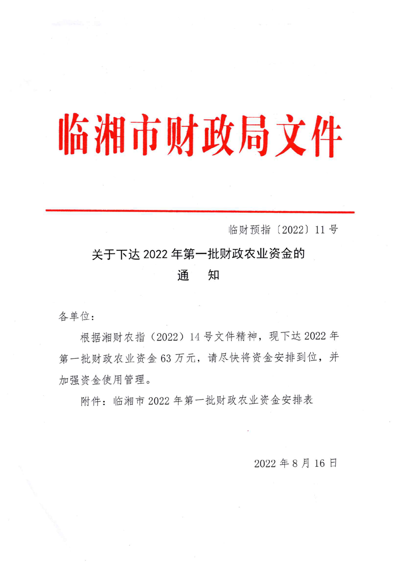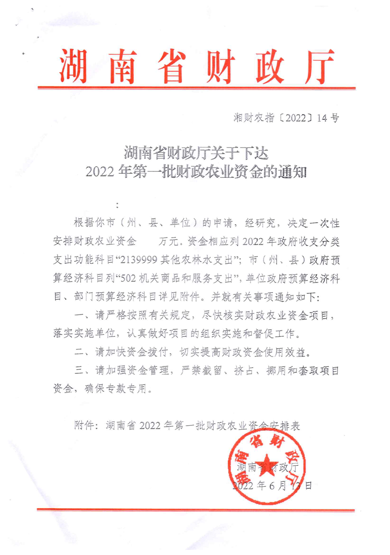 关于下达2022年第一批财政农业资金的通知