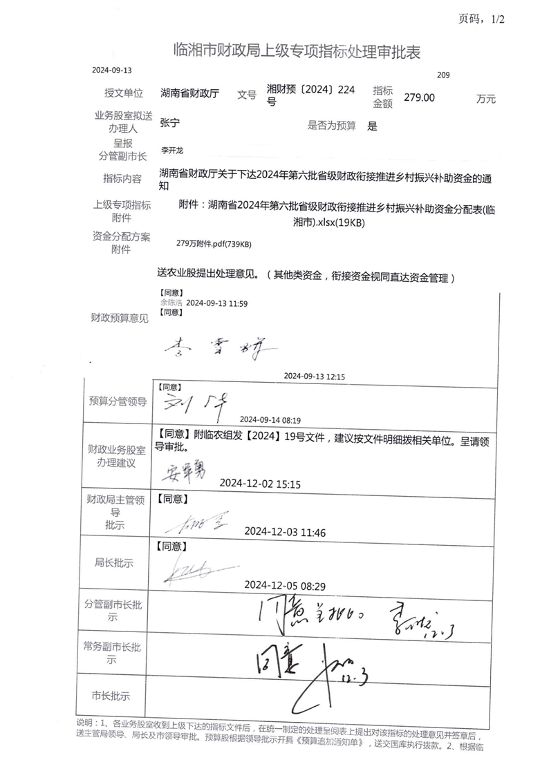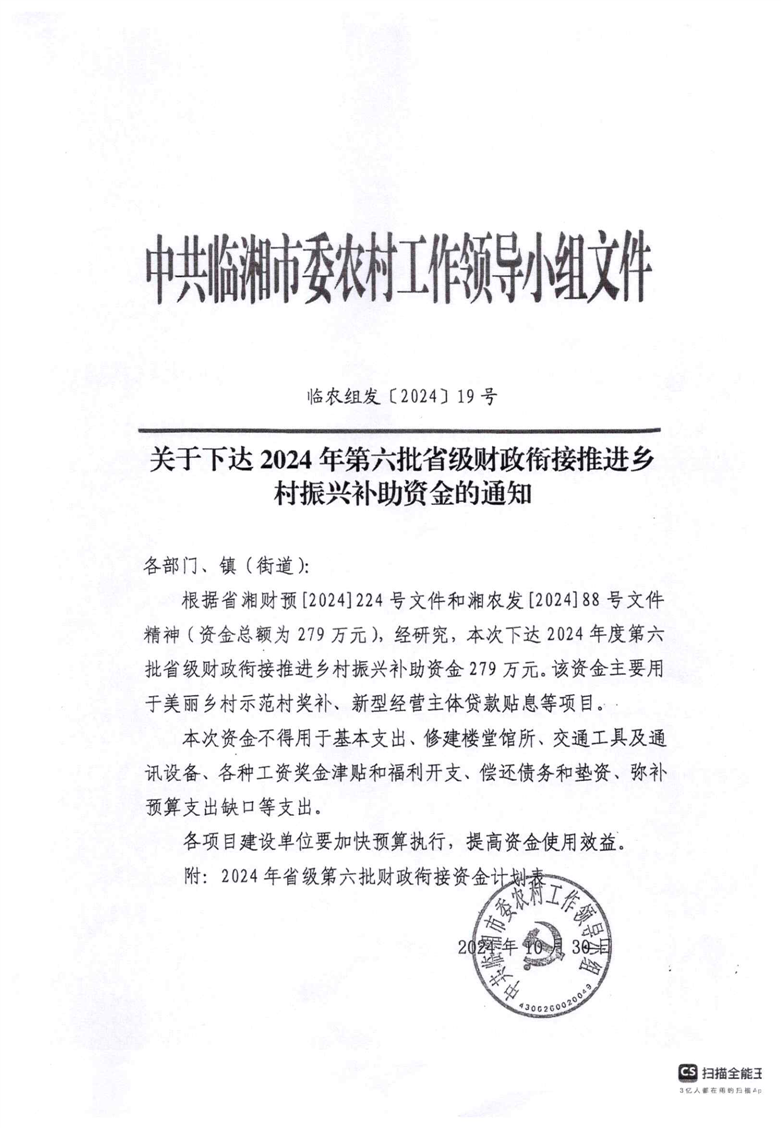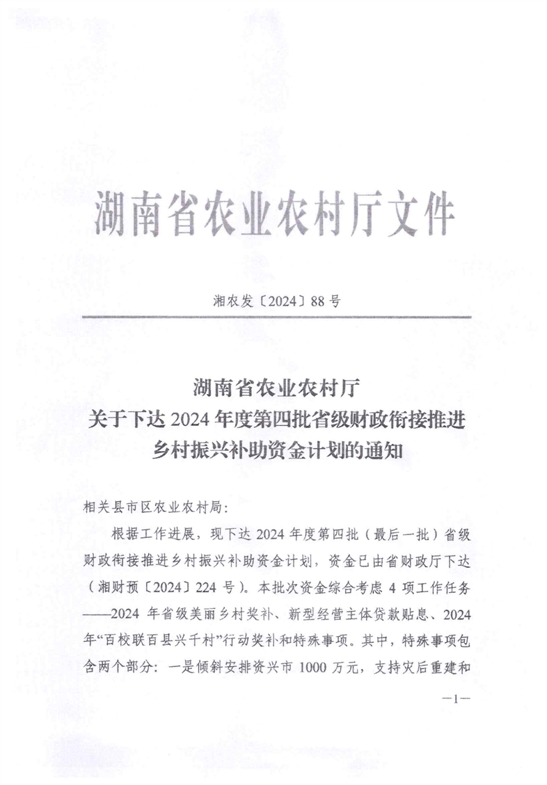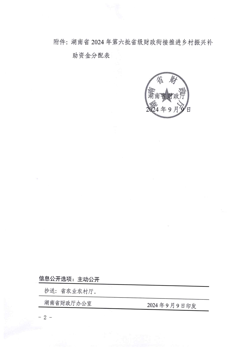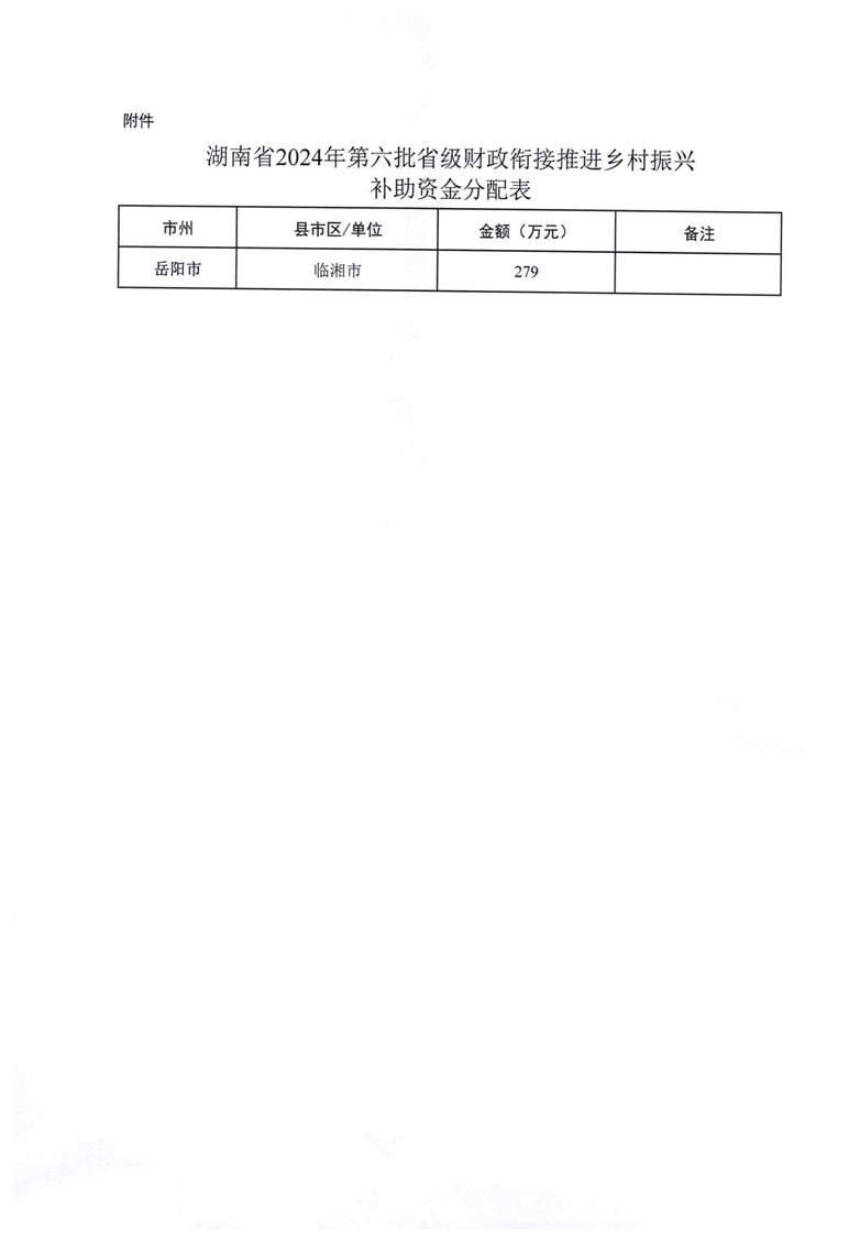关于下达2024年第六批省级财政衔接推进乡村振兴补助资金的通知