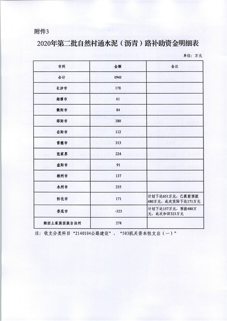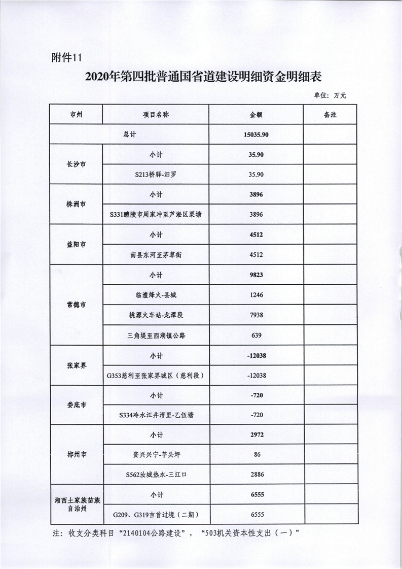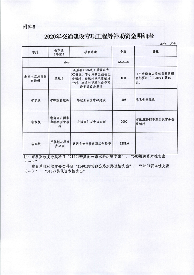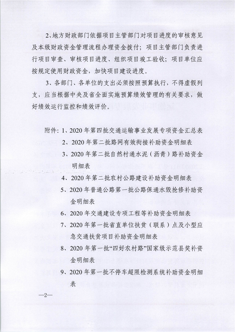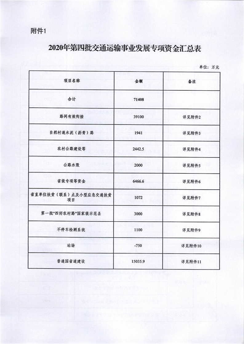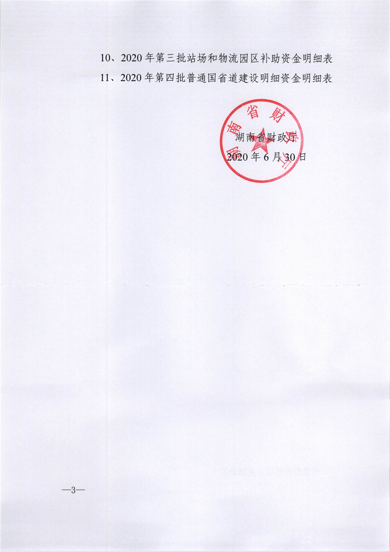 湖南省财政厅关于下达2020年第四批交通运输事业发展专项资金的通知