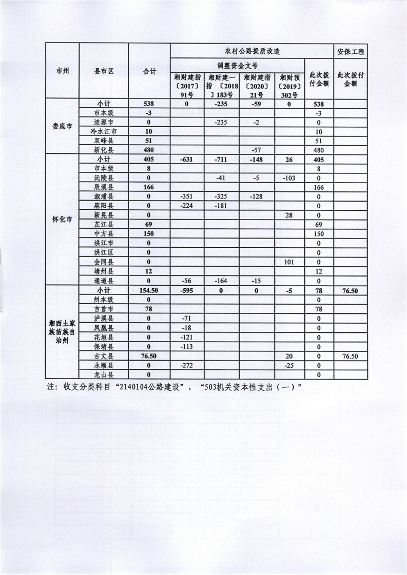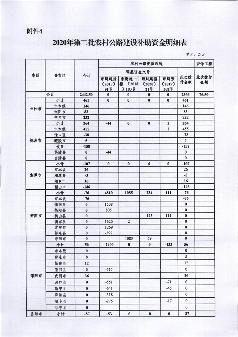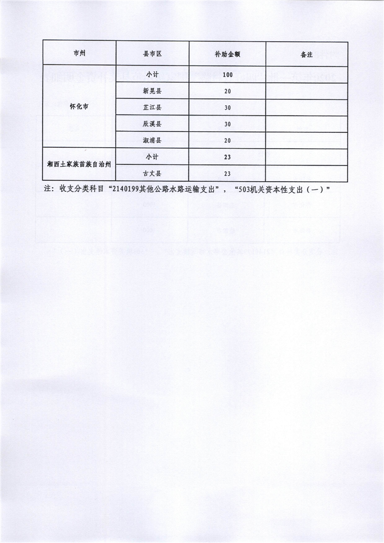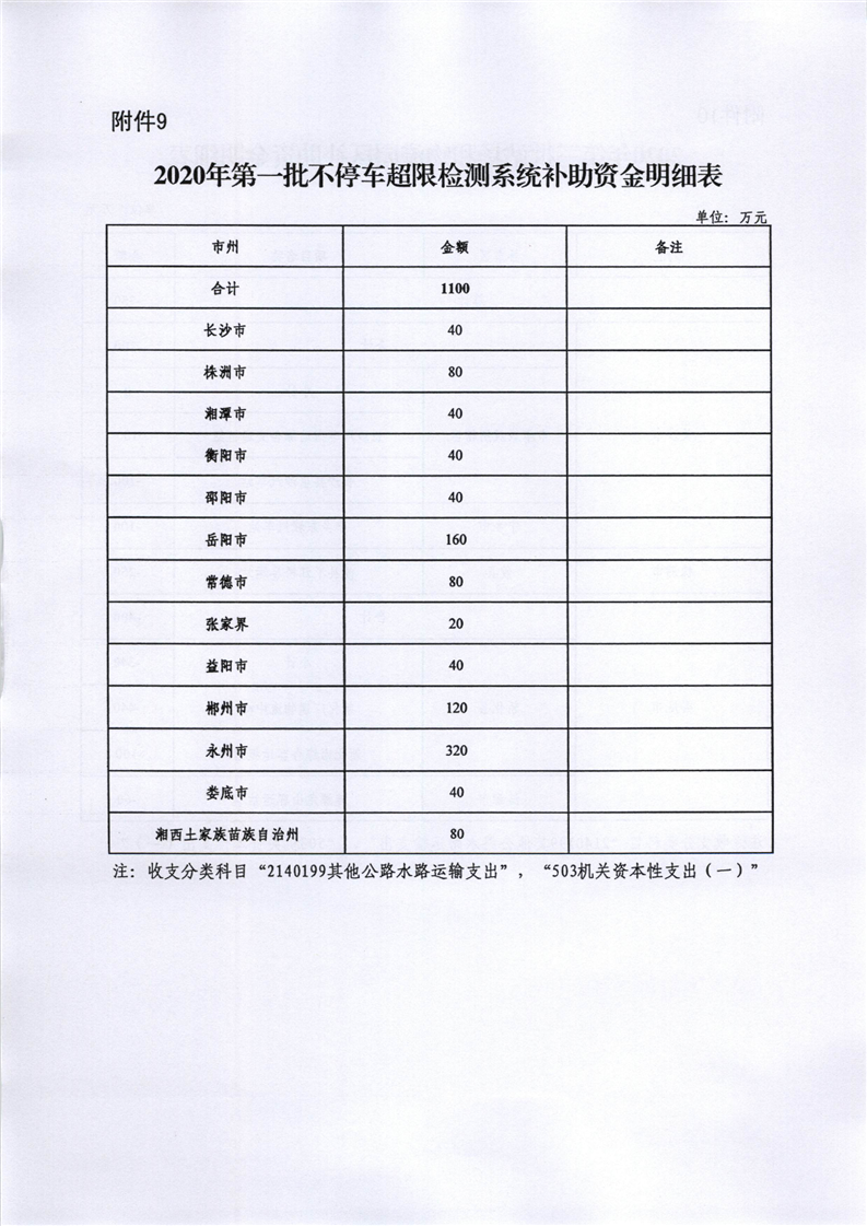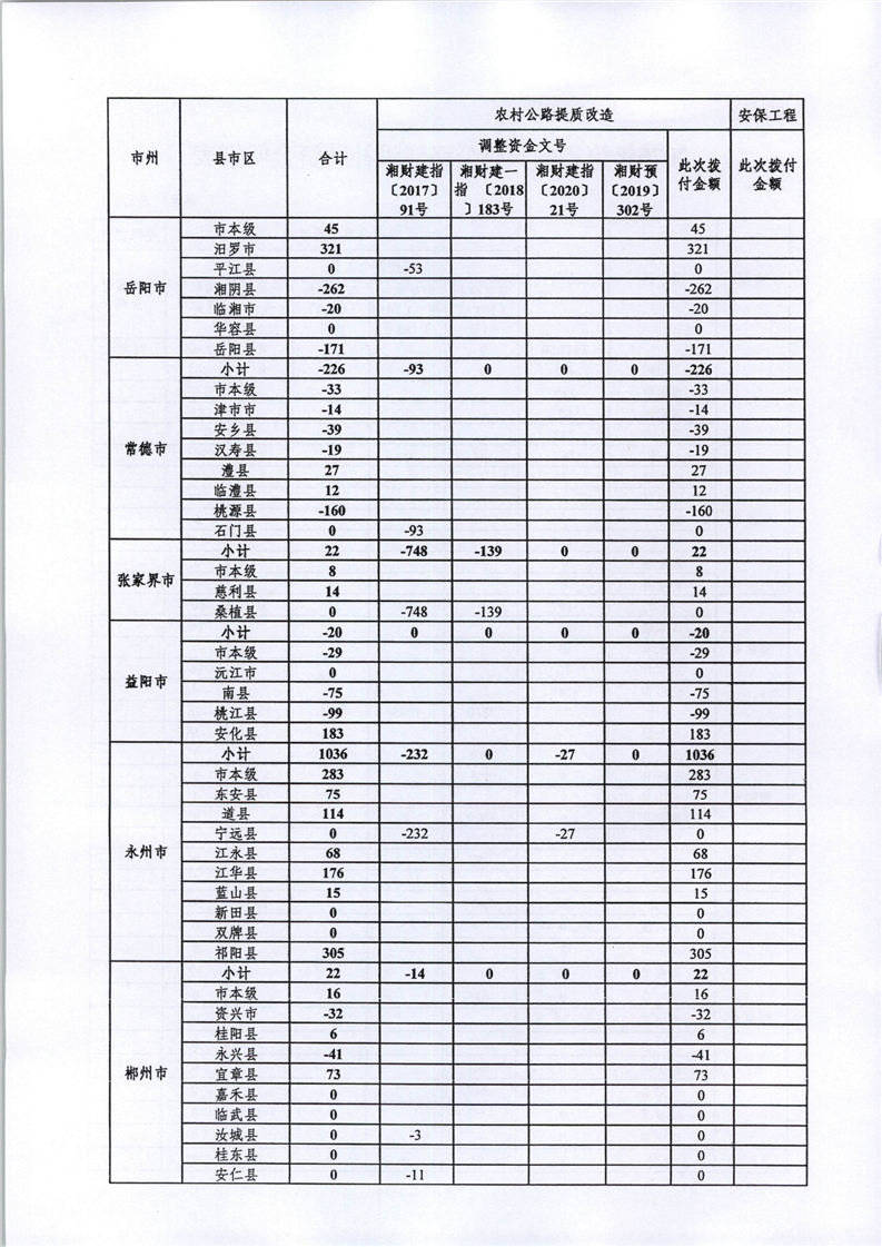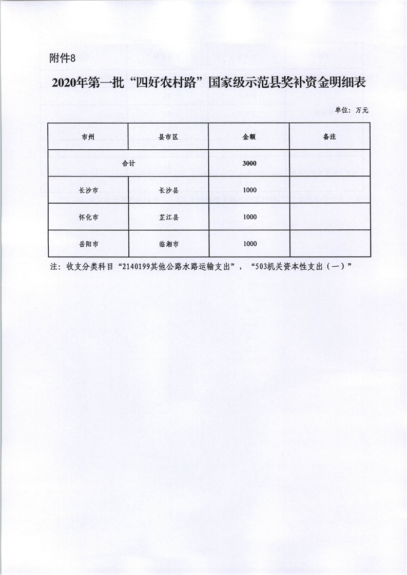 湖南省财政厅关于下达2020年第四批交通运输事业发展专项资金的通知