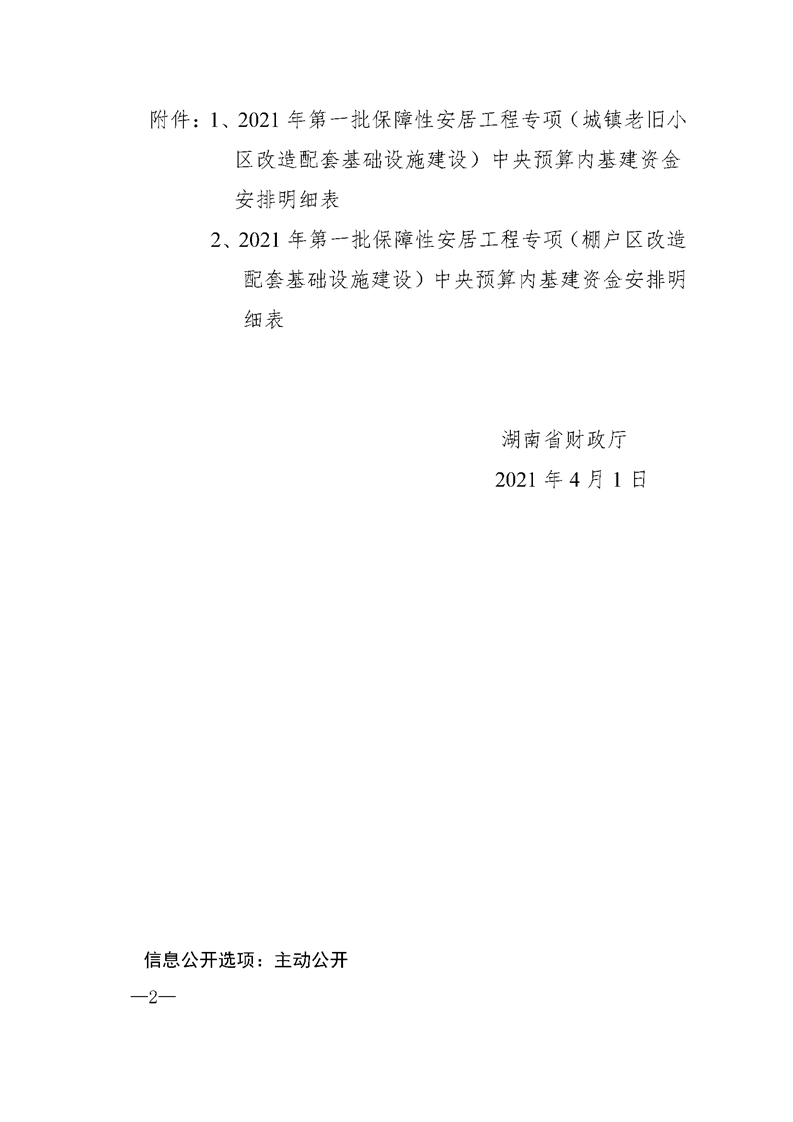 湖南省财政厅关于下达2021年第一批保障性安居工程专项中央预算内基建资金的通知