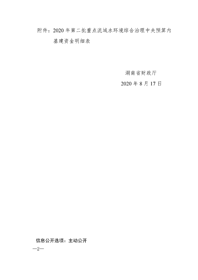 湖南省财政厅关于下达2020年第二批重点流域水环境综合治理中央预算内基建资金的通知