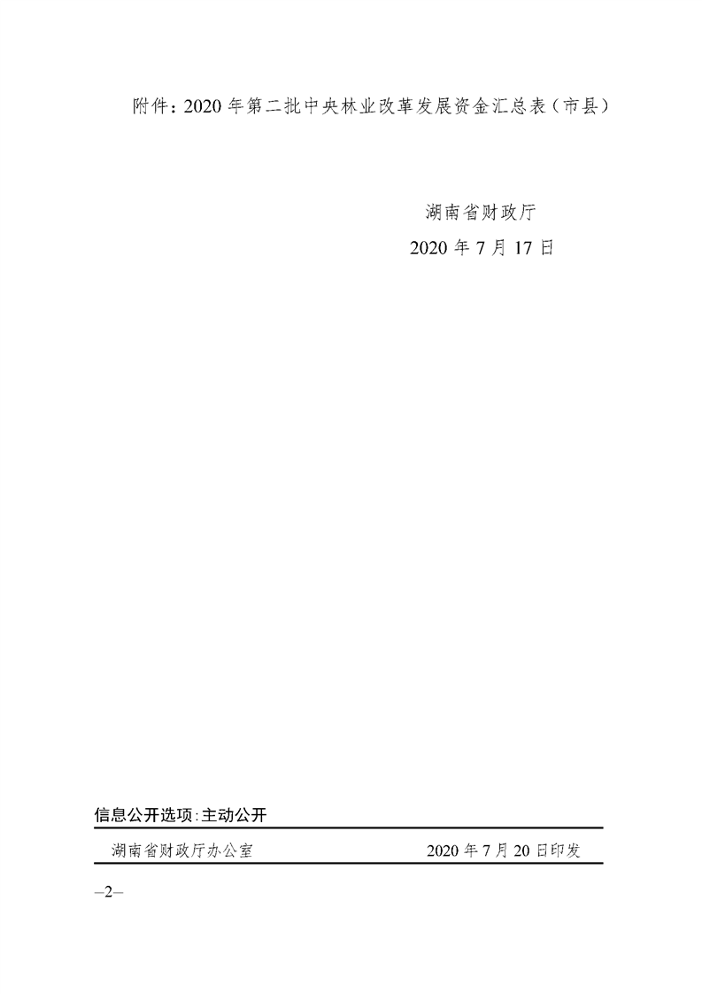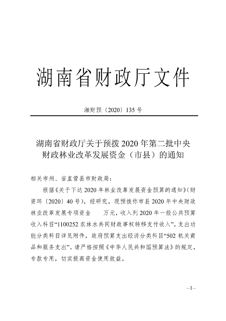 湖南省财政厅关于预拨2020年第二批中央财政林业改革发展资金(市县)的通知
