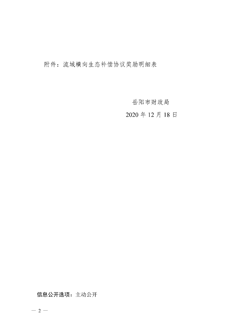 岳阳市财政局关于下达流域横向补偿协议奖励资金的通知