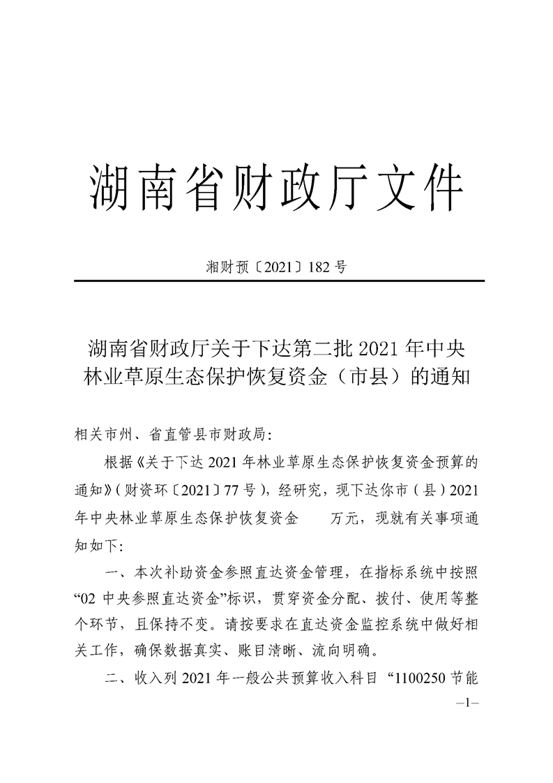 关于下达第二批2021年中央林业草原生态保护恢复资金(市县)的通知