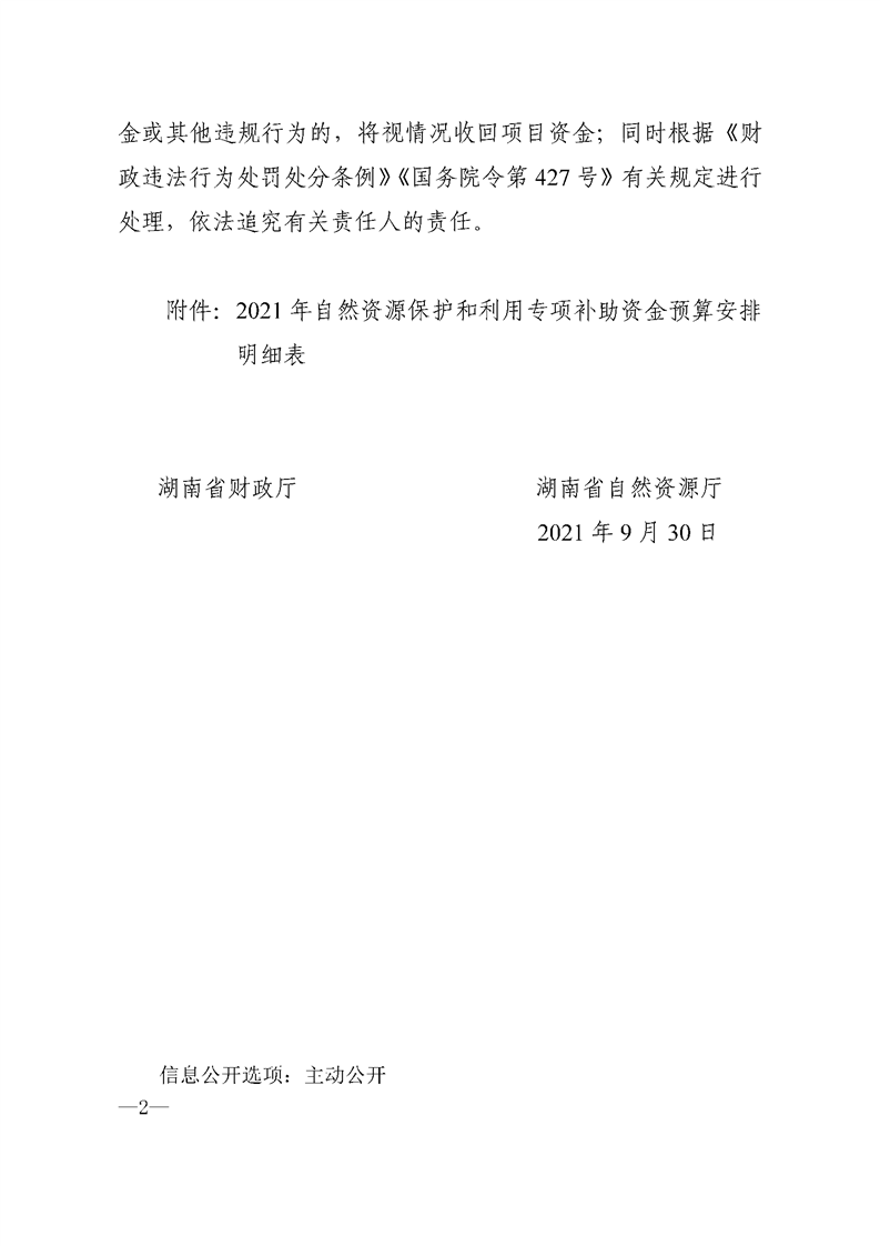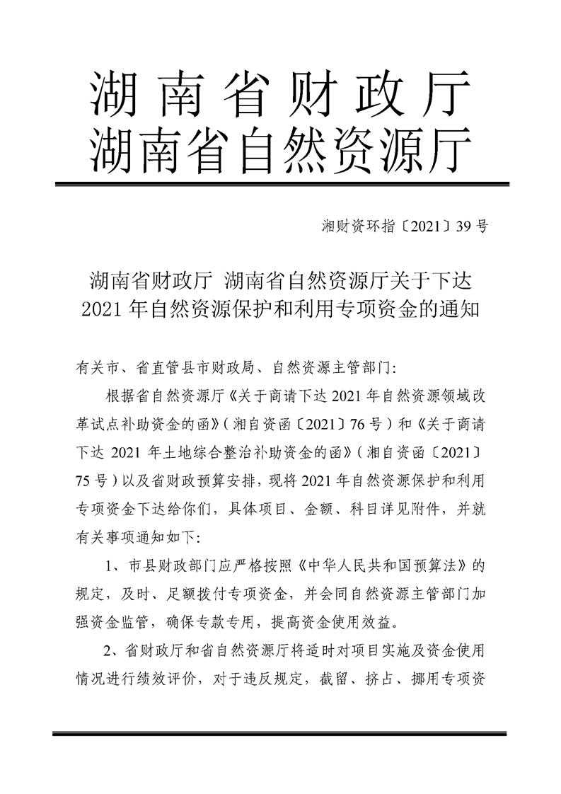 湖南省财政厅_湖南省自然资源厅关于下达2021年自然资源保护和利用专项资金的通知