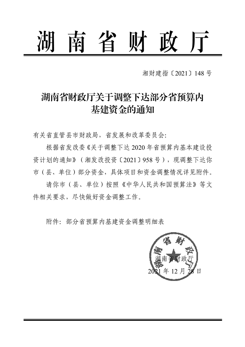 关于调整下达部门省预算内基建资金的通知