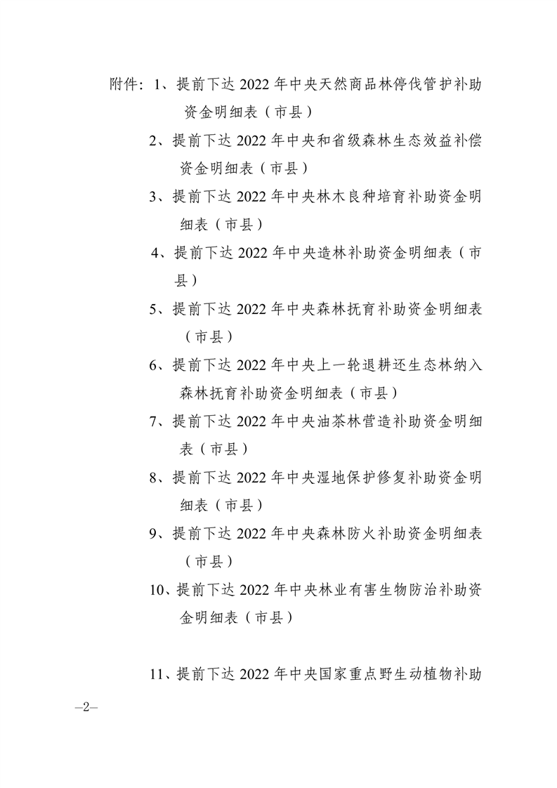 关于提前下达2022年中央林业改革发展和省级林业生态保护修复及发展资金(市县)的通知