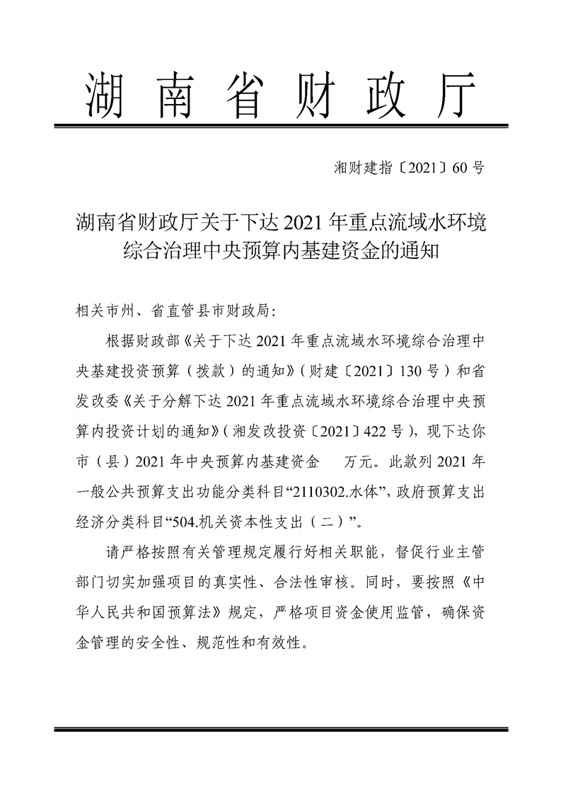 关于下达2021年重点流域水环境综合治理中央预算内基建资金的通知