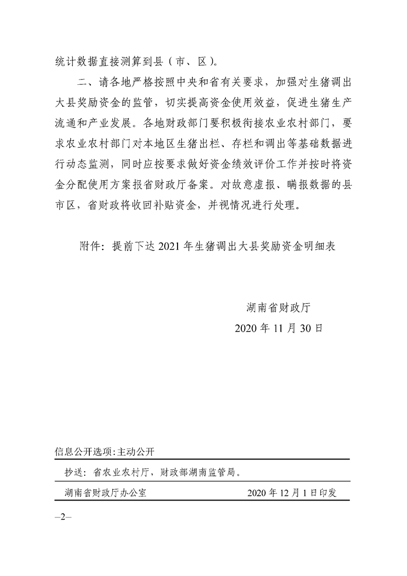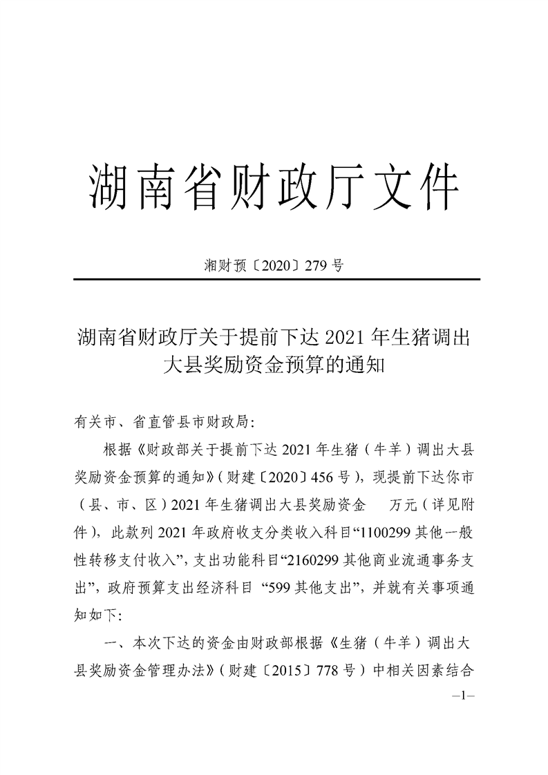 关于提前下达2021年生猪调出大县奖励资金预算的通知