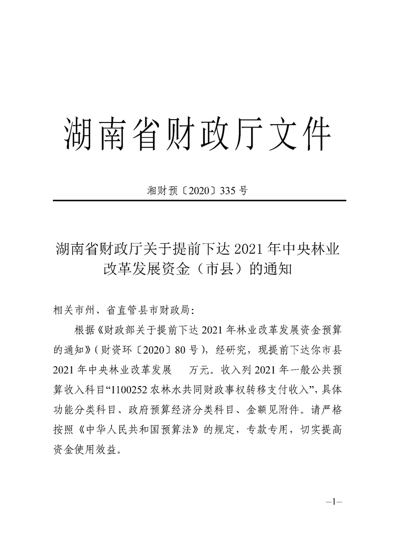 关于提前下达2021年中心林业改革发展资金(市县)的通知