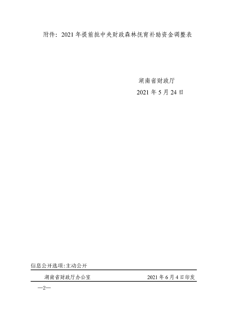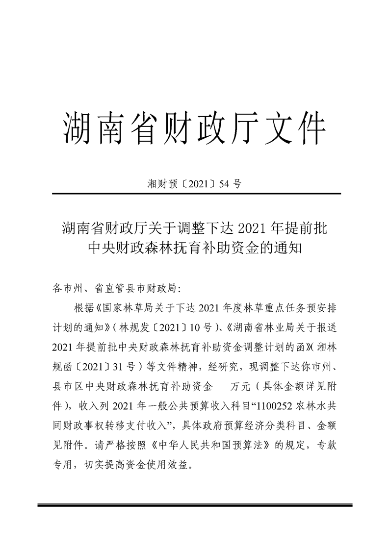 关于调整下达2021年提前批中央森林抚育补助资金的通知