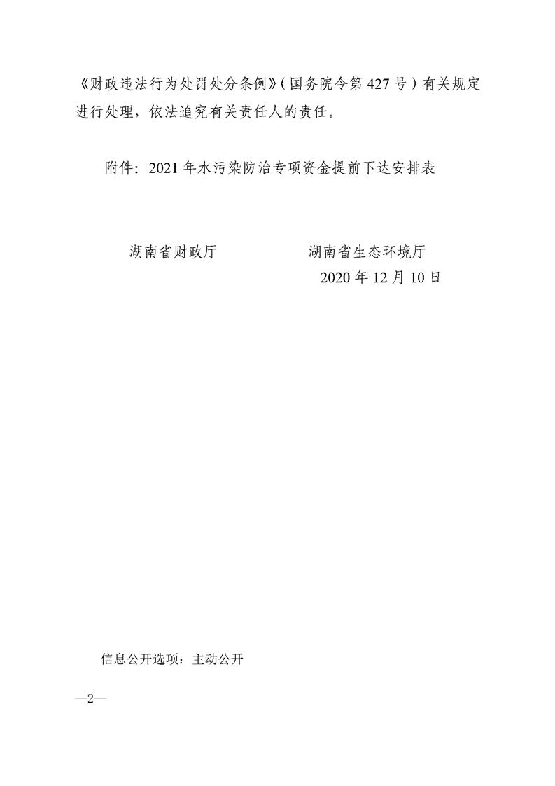 湖南省财政厅 湖南省生态环境厅关于提前下达2021年中央水污染防治专项资金的通知