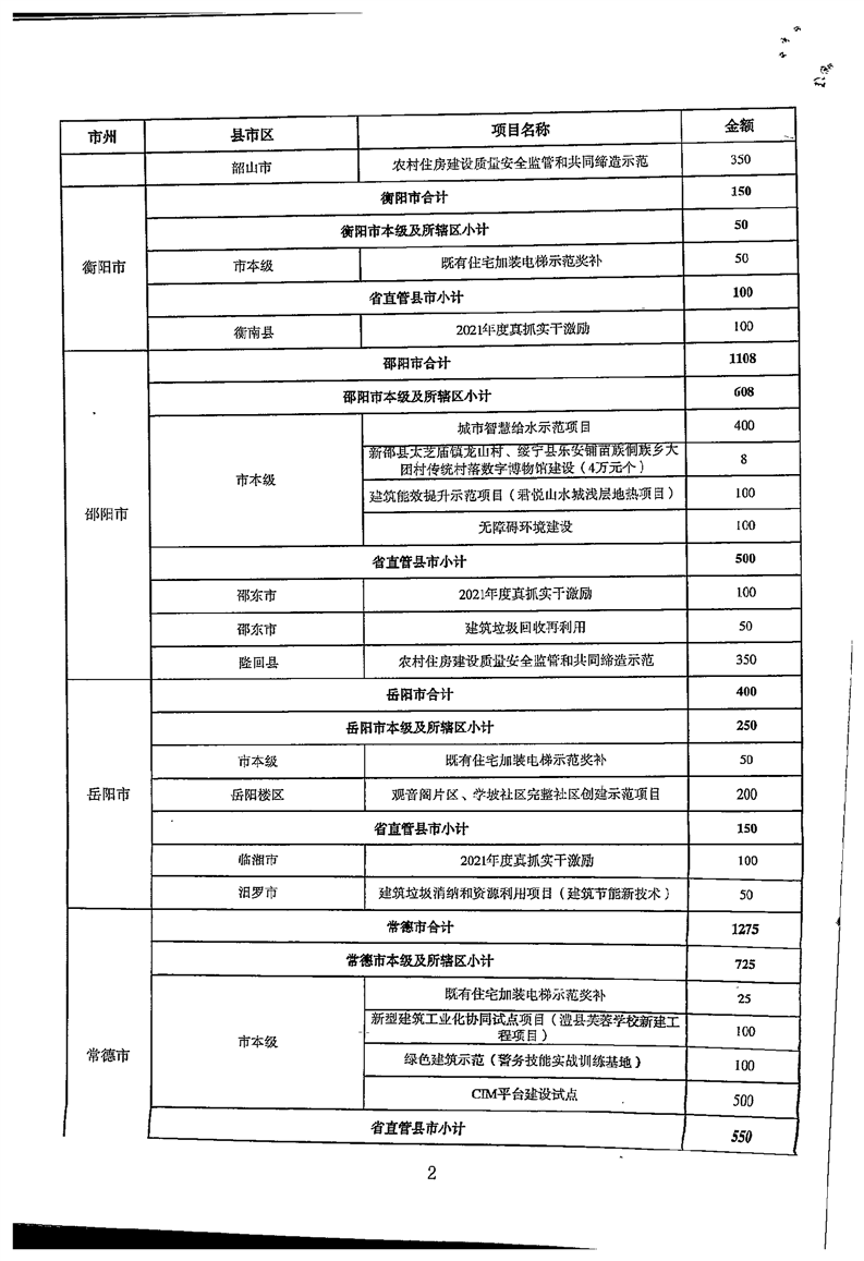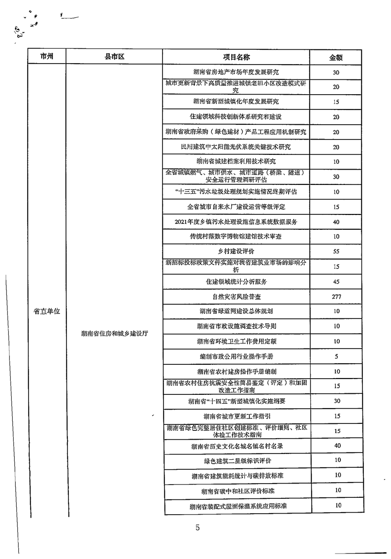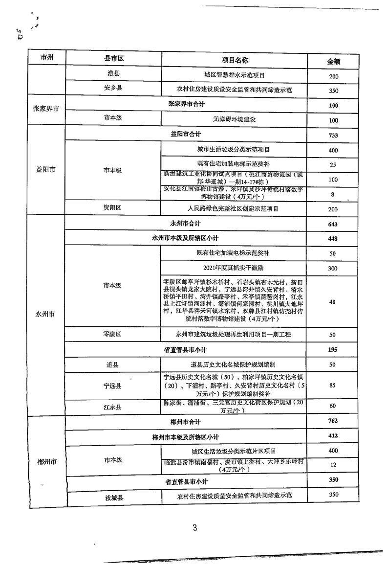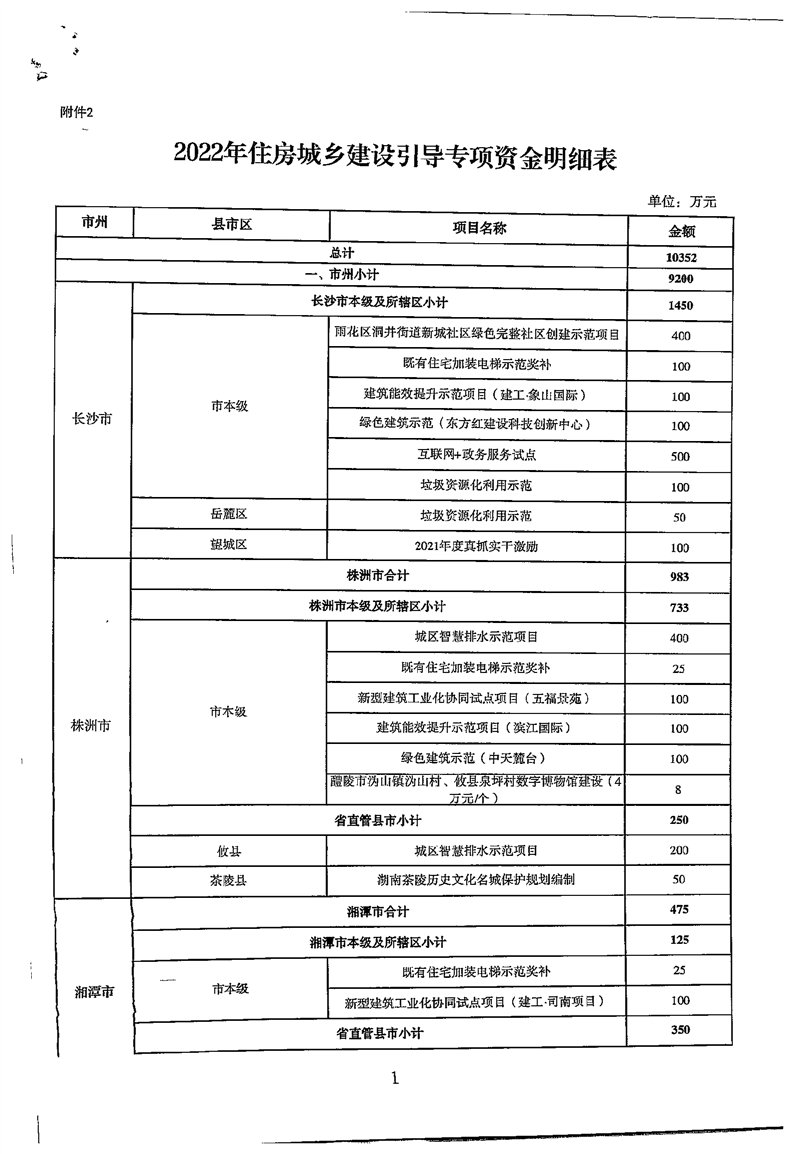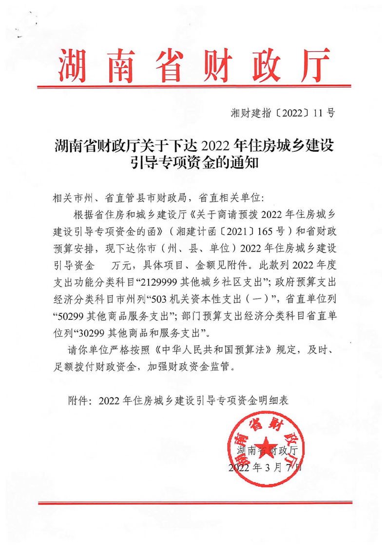 湖南省财政厅关于下达2022年住房城乡建设引导专项资金的通知