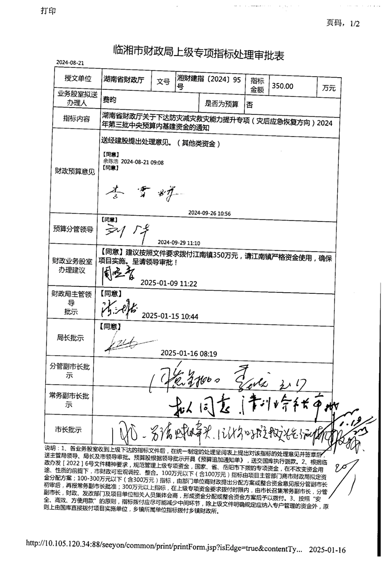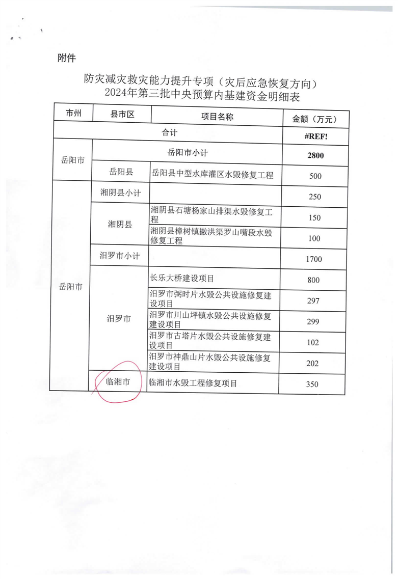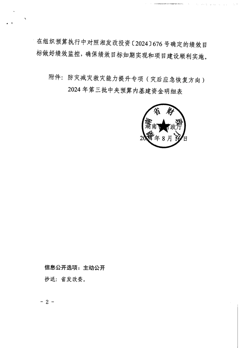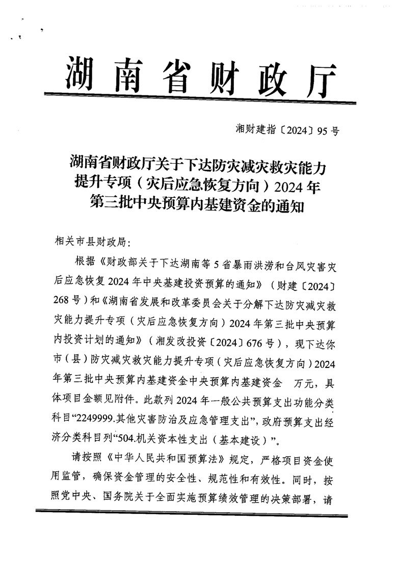 关于下达防灾减灾救灾能力提升专项(灾后应急恢复方向)2024年第三批中央预算内基建资金的通知