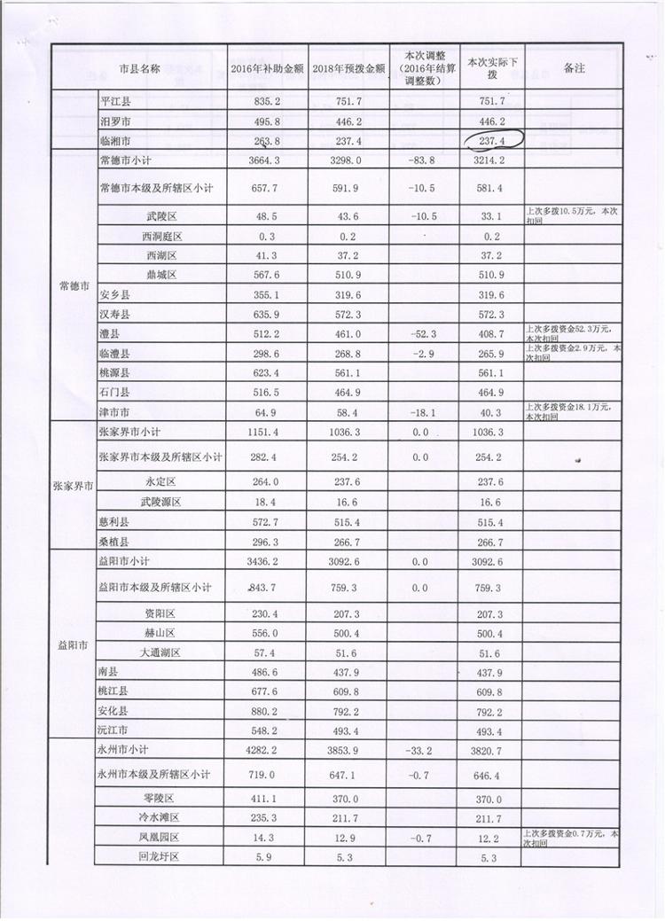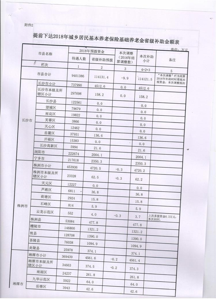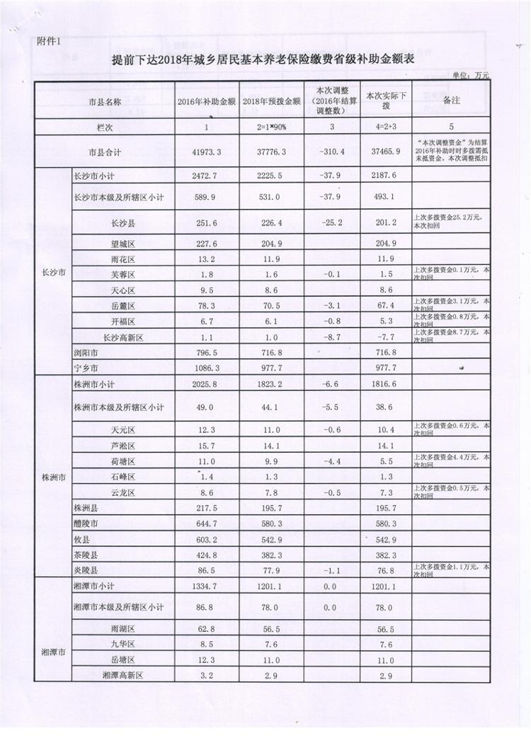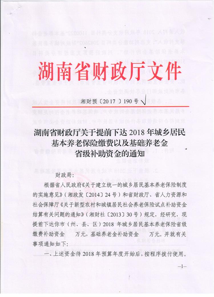 湖南省财政厅关于提前下达2018年城乡居民基本养老保险缴费以及基础养老金省级补助资金的通知