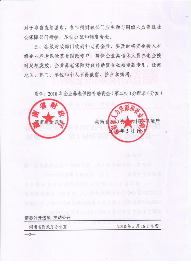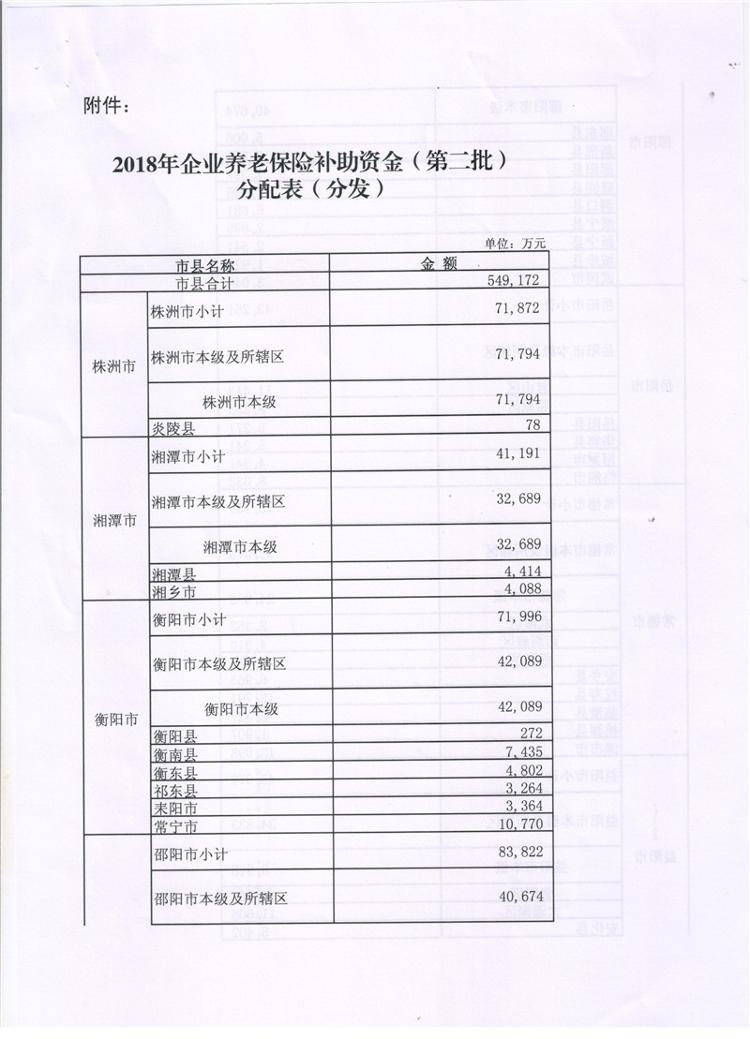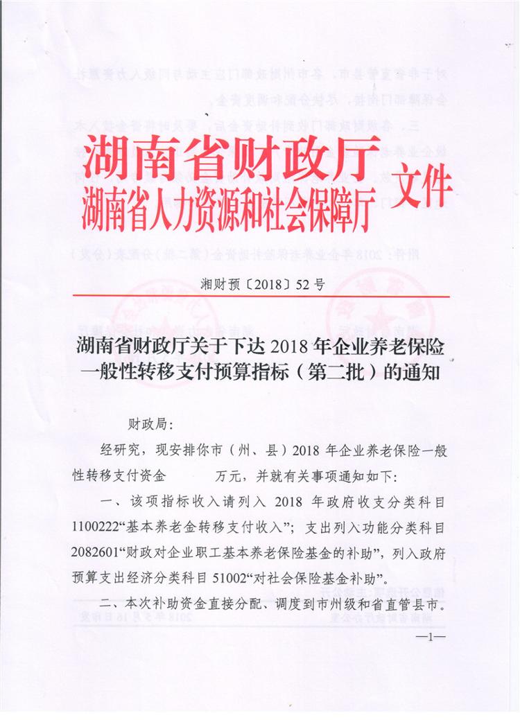 湖南省财政厅关于下达2018年企业养老保险一般性转移支付预算指标(第二批)的通知