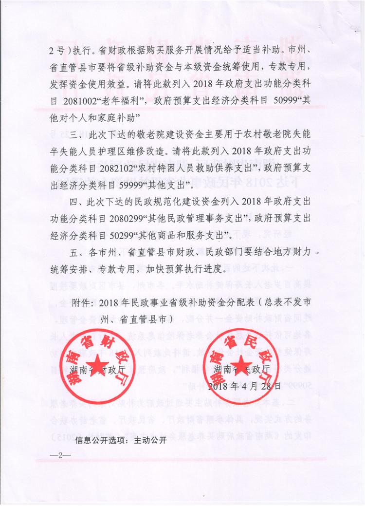湖南省财政厅湖南省民政厅关于下达2018年民政事业省级补助资金的通知