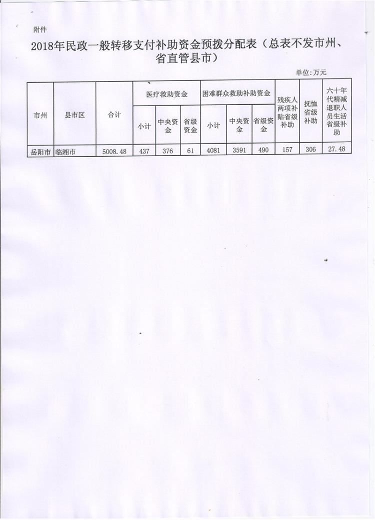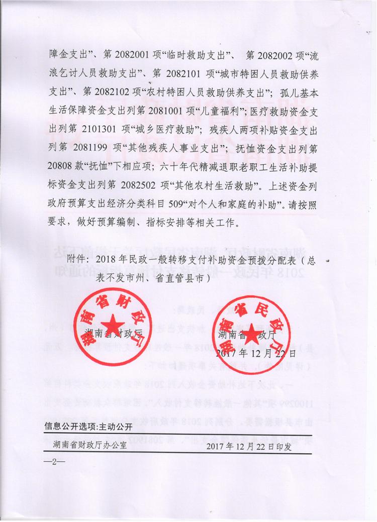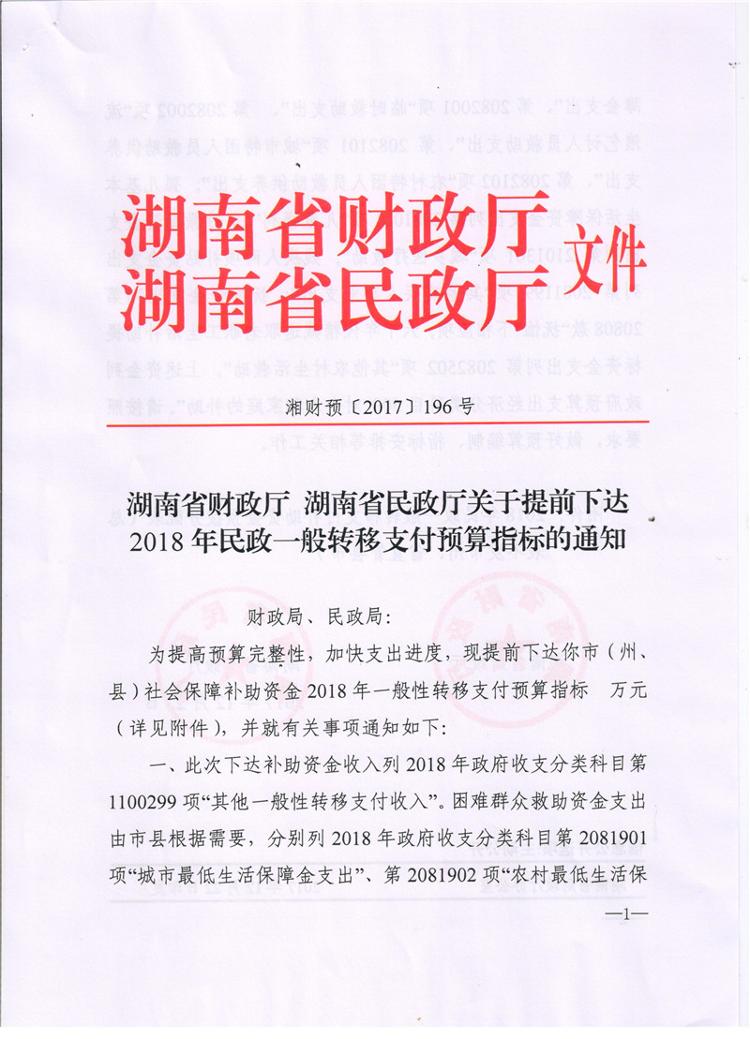 湖南省财政厅湖南省民政厅关于提前下达2018年民政一般转移支付预算指标的通知