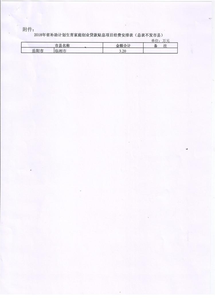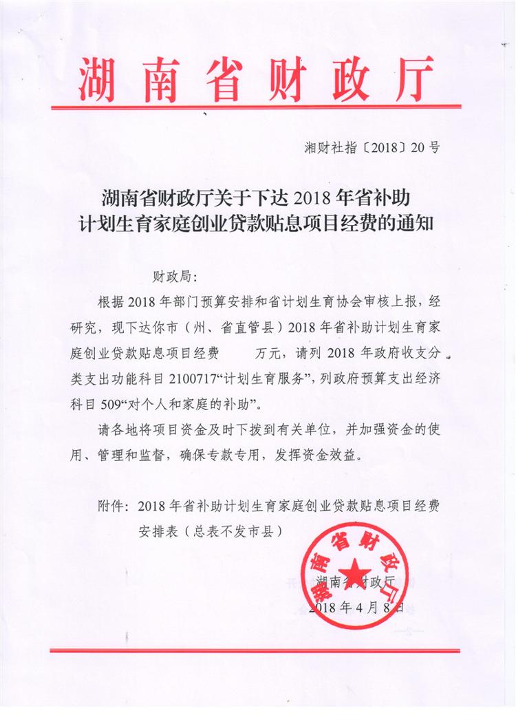 湖南省财政厅关于下达2018年省补助计划生育家庭创业贷款贴息项目经费的通知