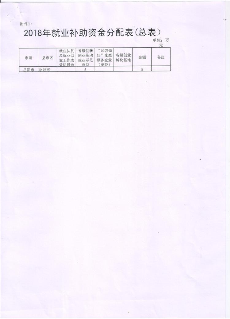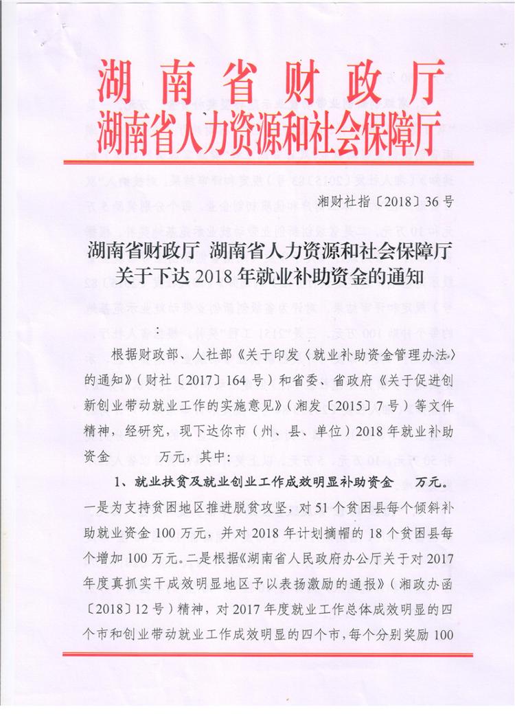 湖南省财政厅湖南省人力资源和社会保障厅关于下达2018年就业补助资金的通知