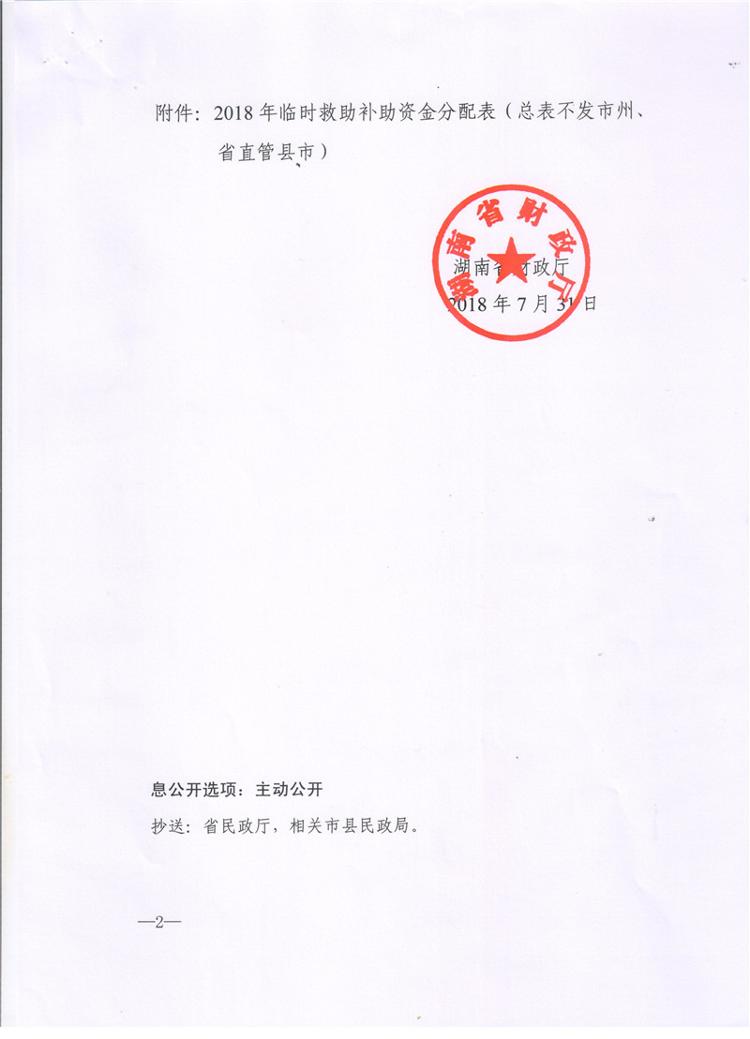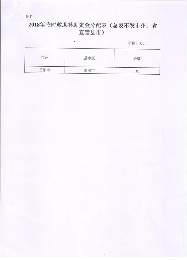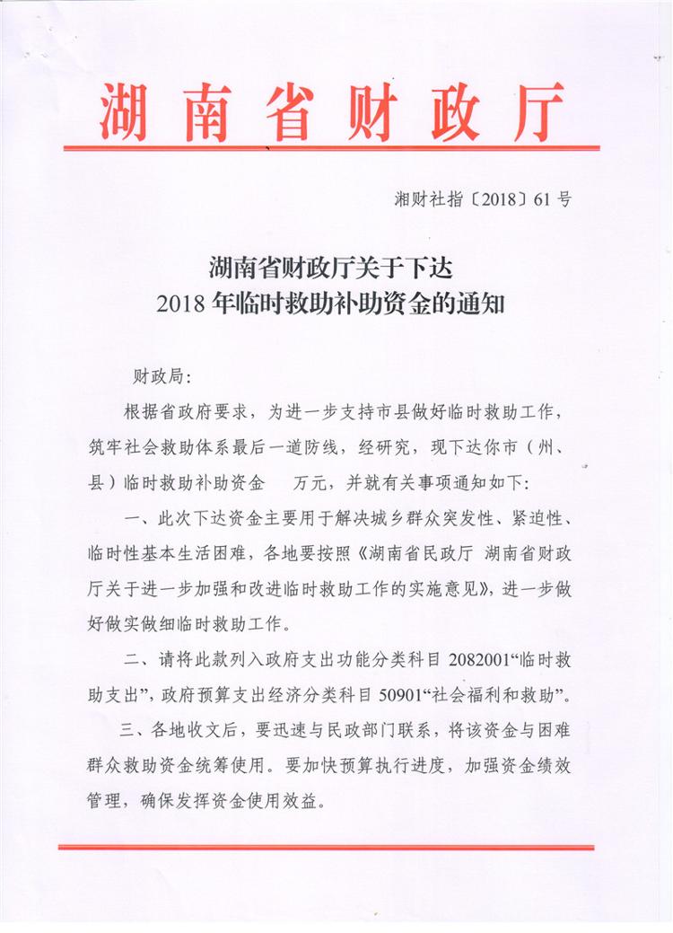 湖南省财政厅关于下达2018年临时救助资金的通知