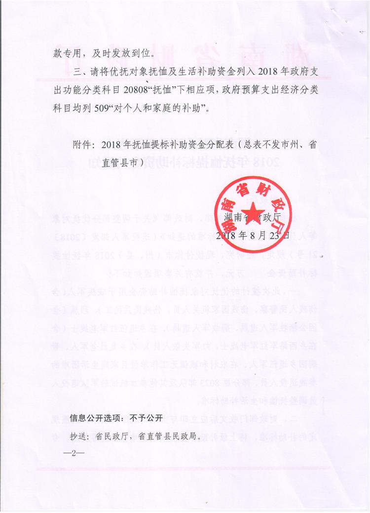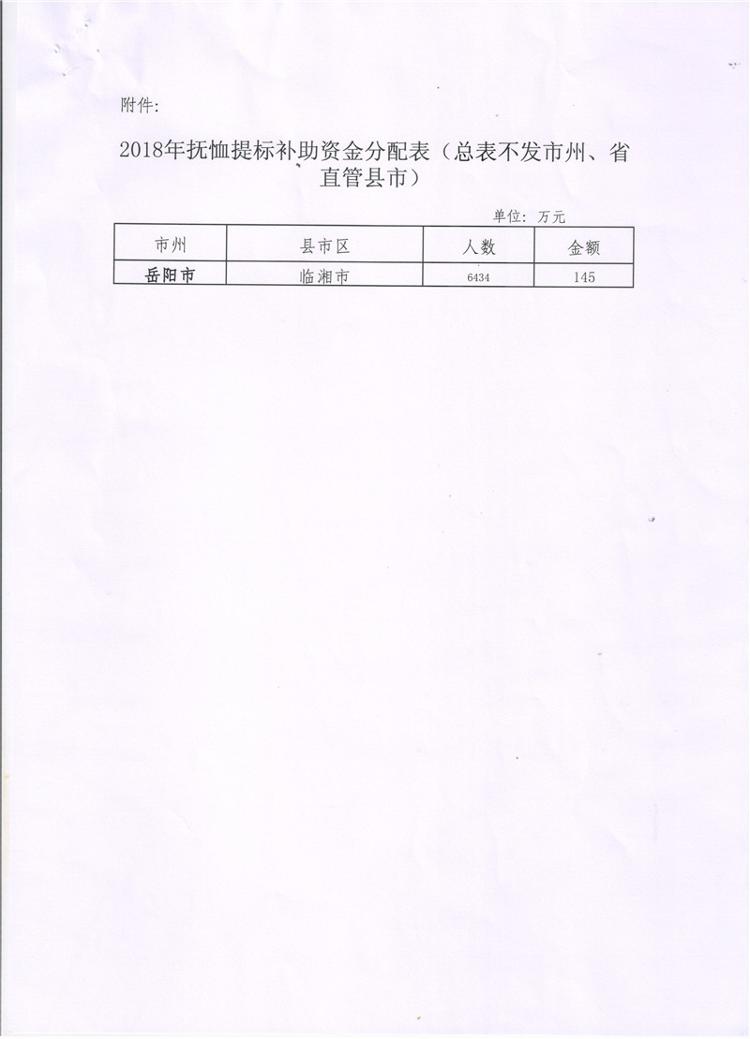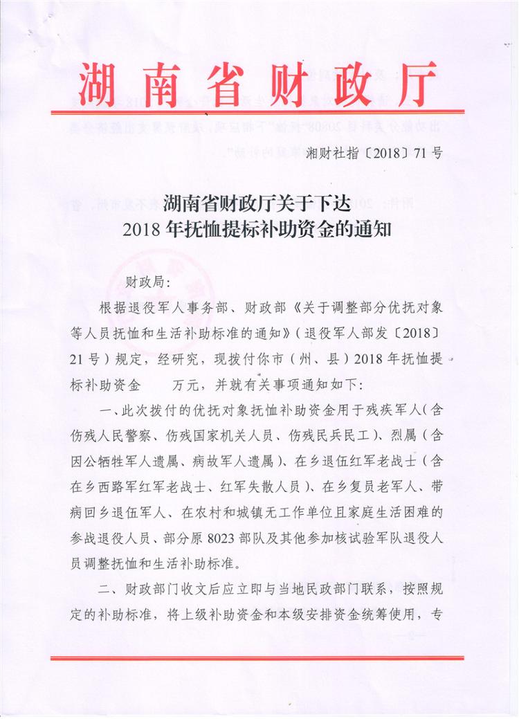 湖南省财政厅关于下达2018年抚恤提标补助资金的通知