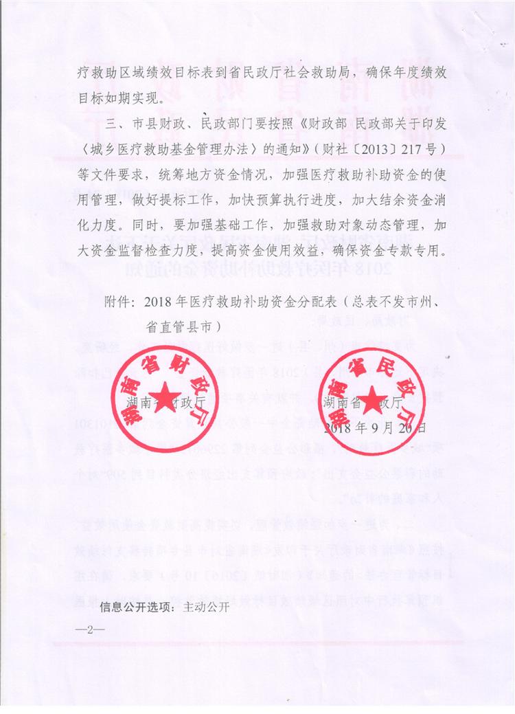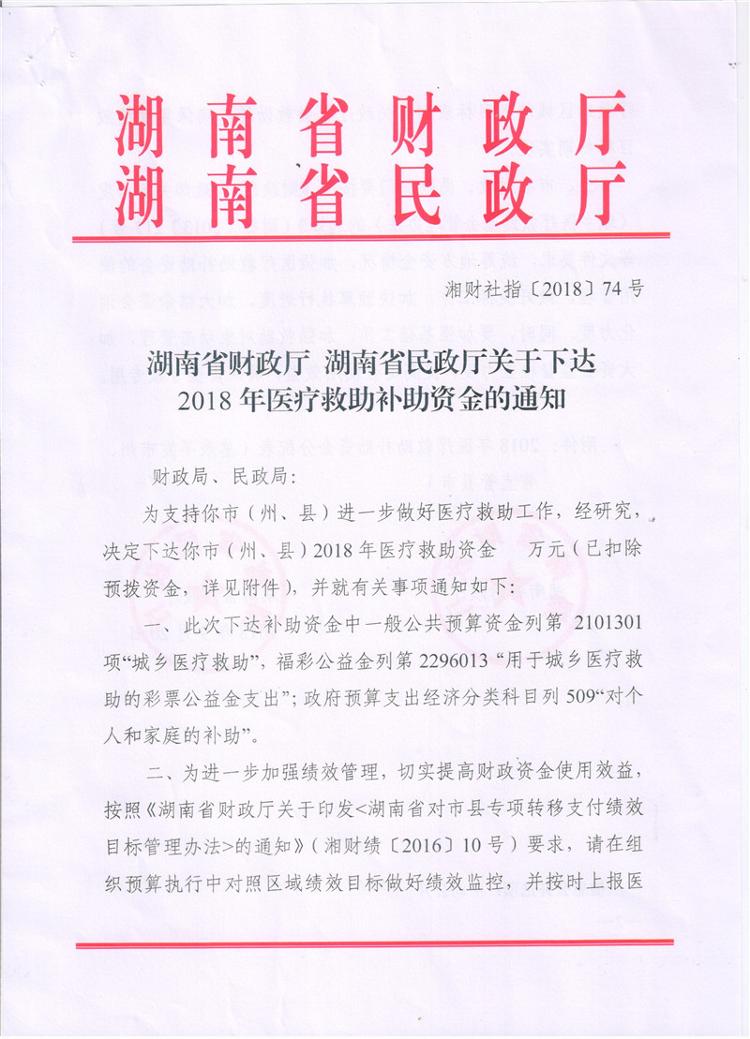 湖南省财政厅湖南省民政厅关于下达2018年医疗救助补助资金的通知
