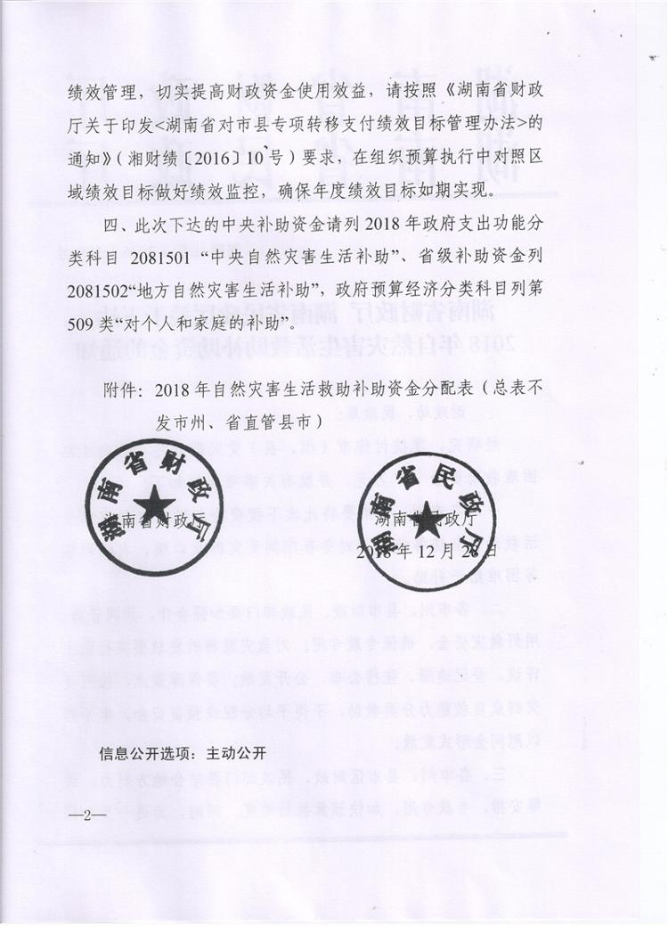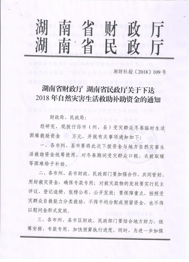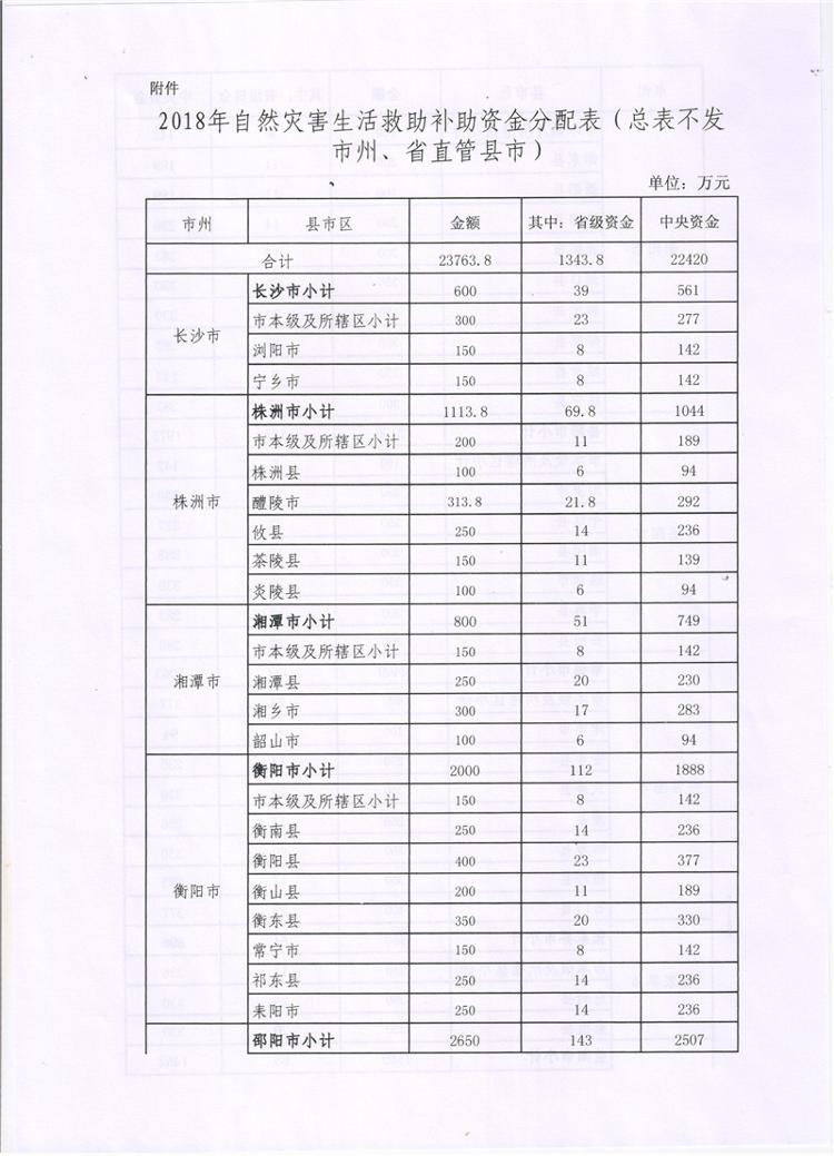 湖南省财政厅湖南省民政厅关于下达2018年自然灾害生活救助补助资金的通知