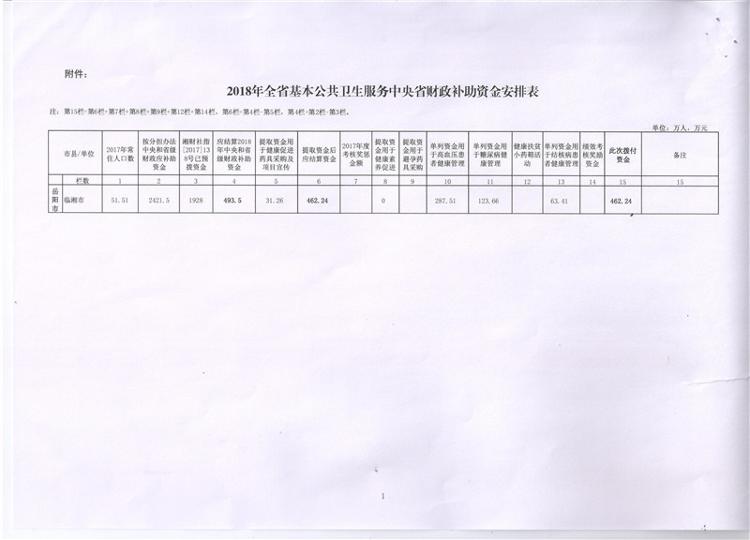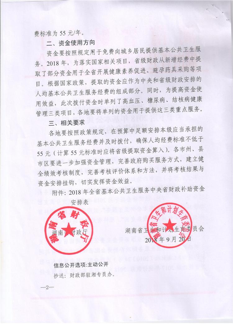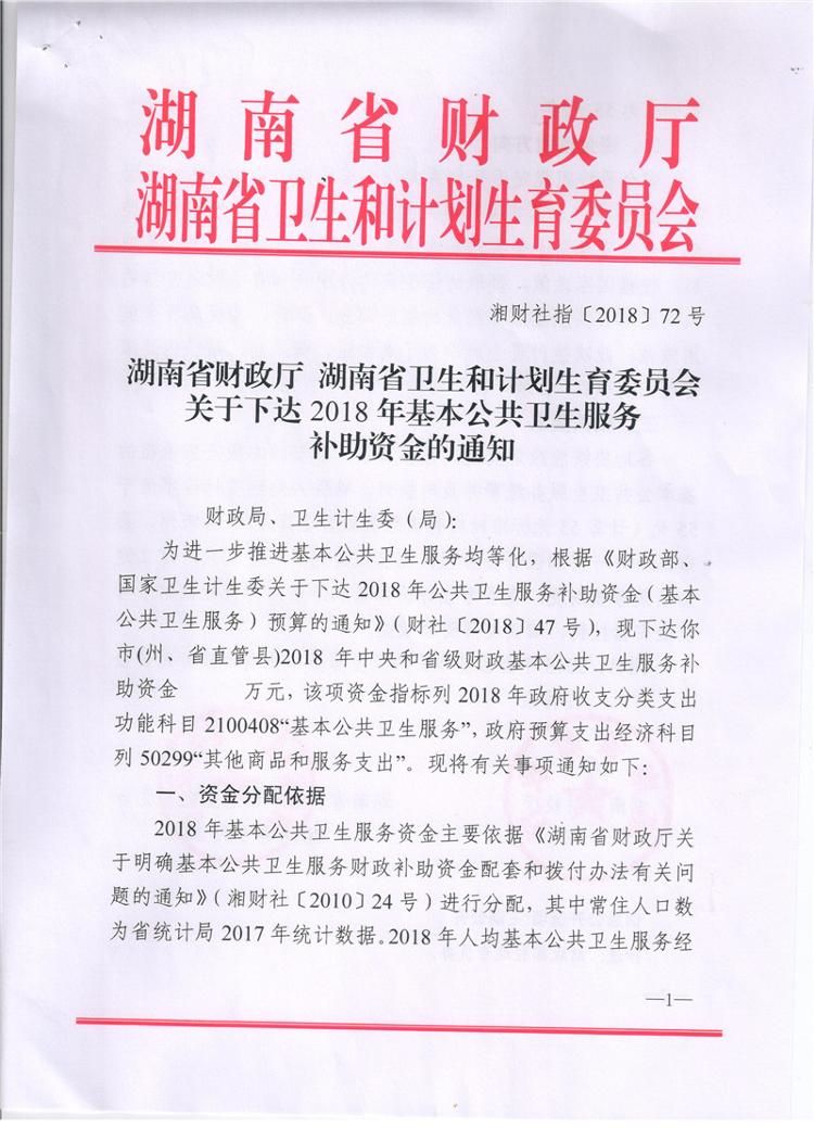 湖南省财政厅湖南省卫生和计划生育委员会关于下达2018年基本公共卫生服务补助资金的通知
