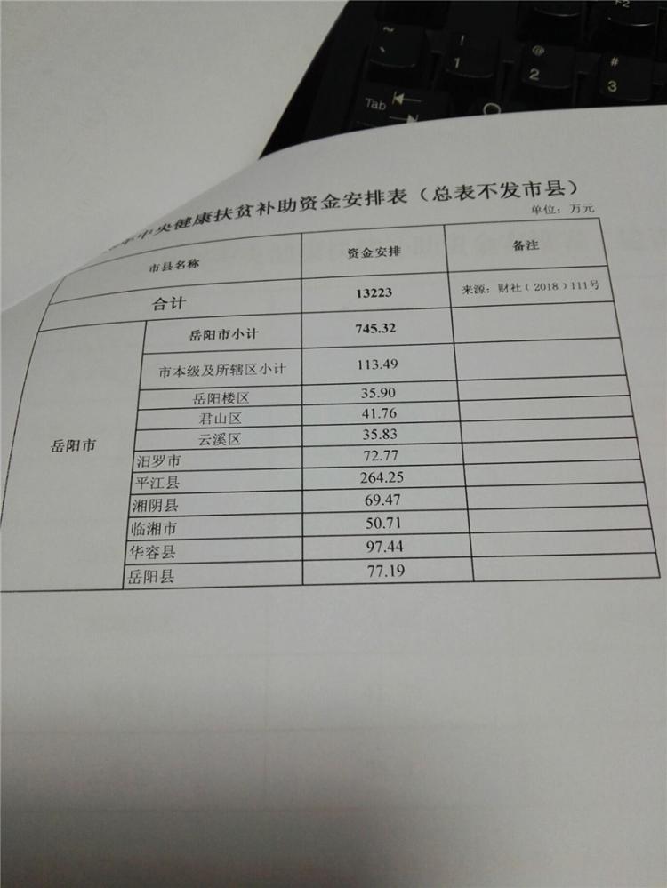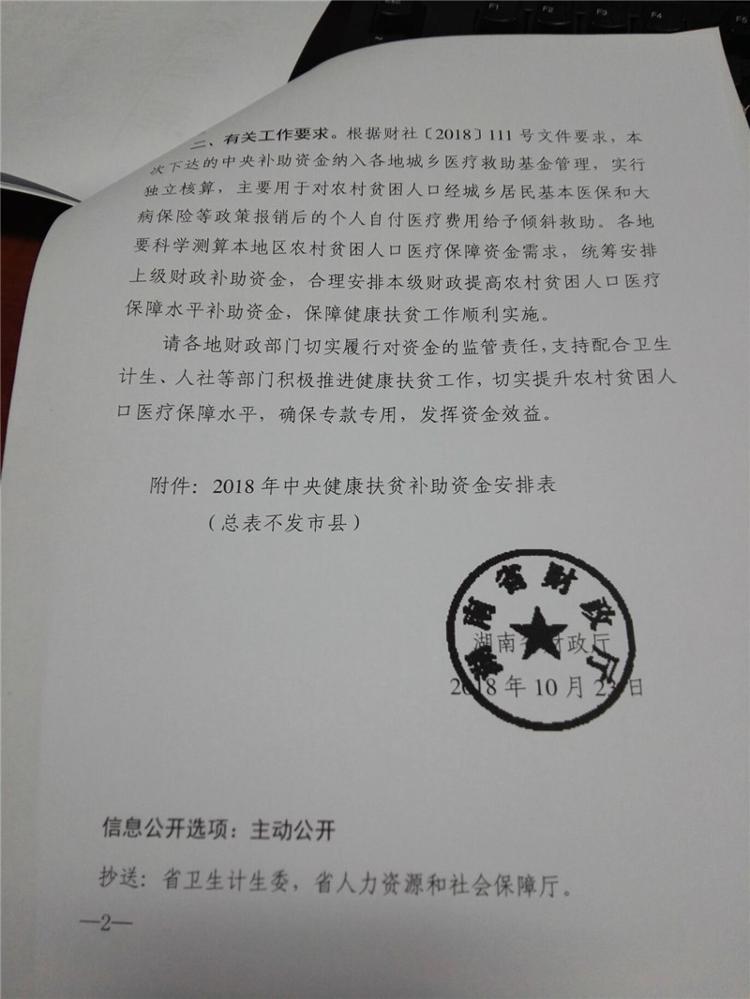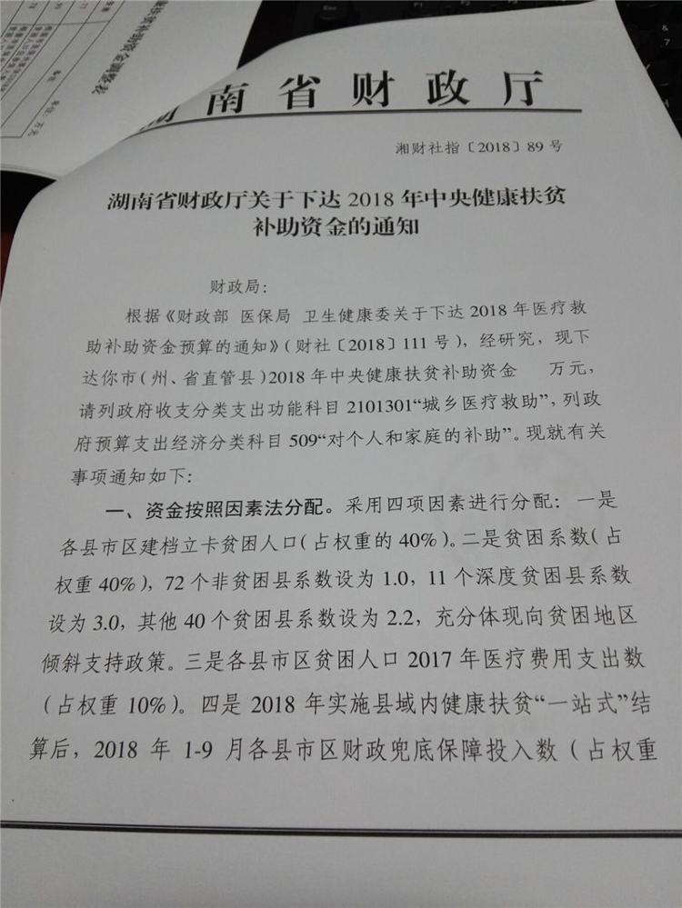 湖南省财政厅关于下达2018年中央健康扶贫补助资金的通知