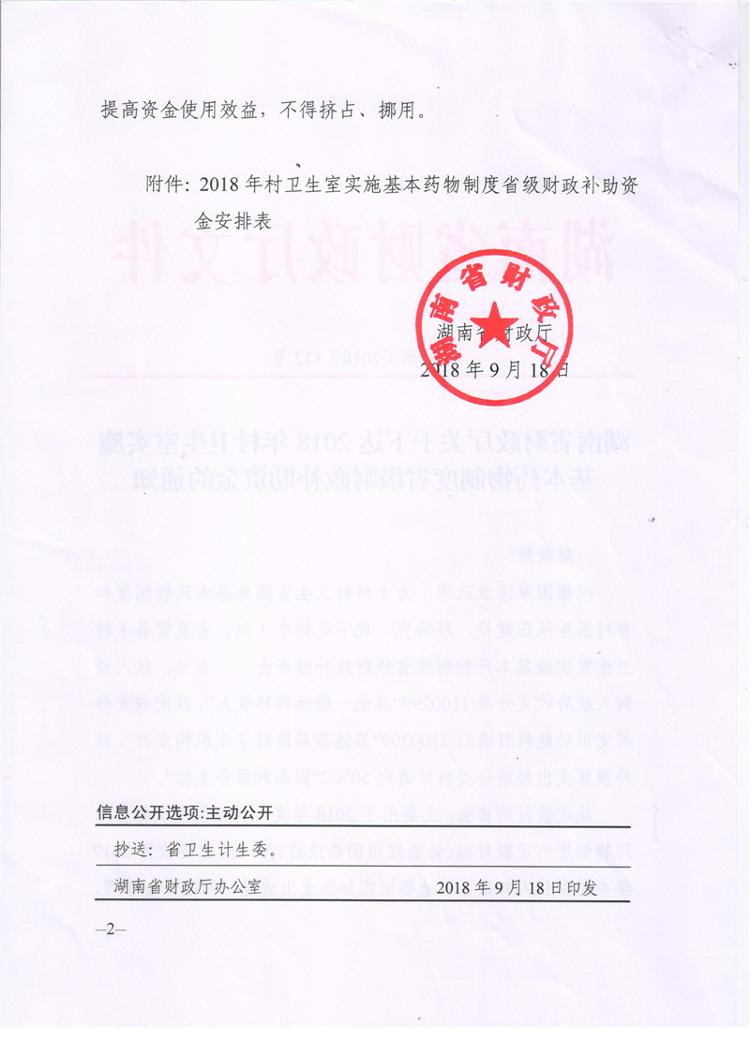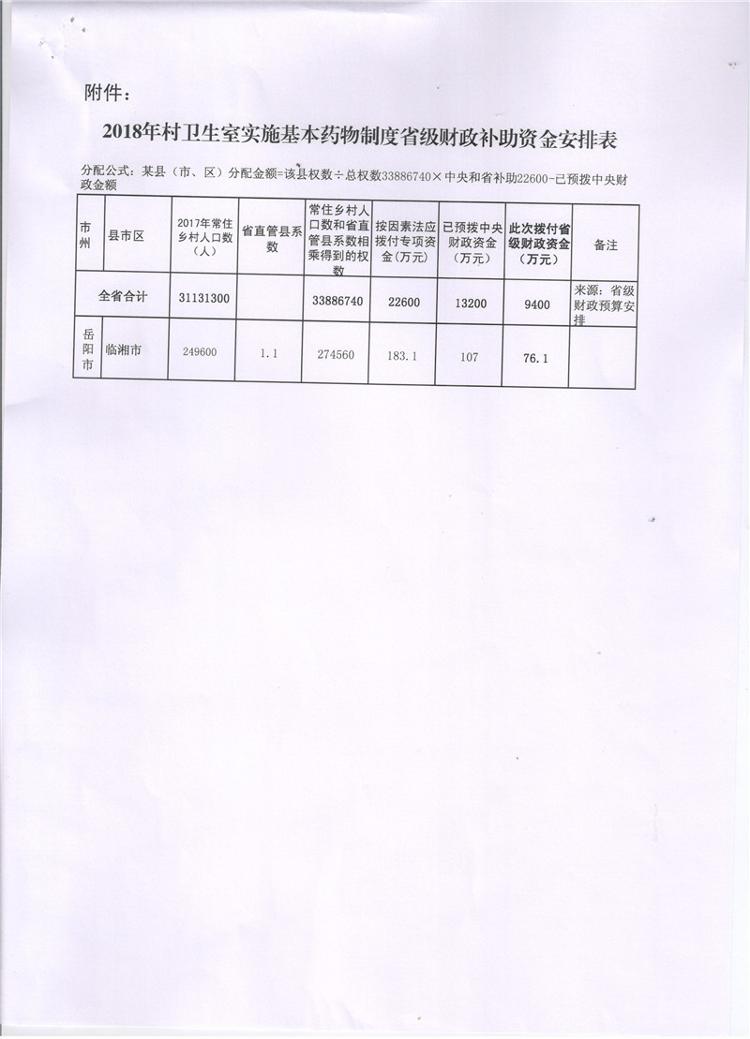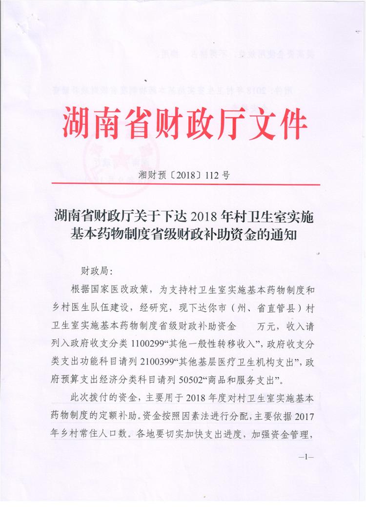 湖南省财政厅关于下达2018年村卫生室实施基本药物制度省级财政补助资金的通知