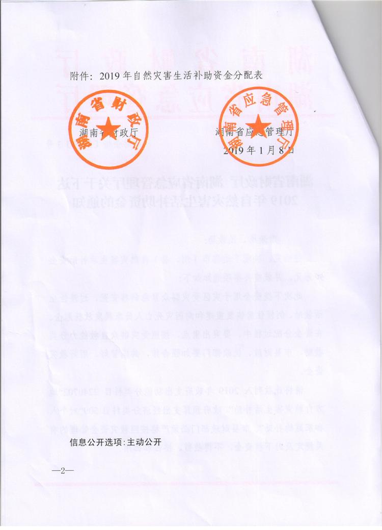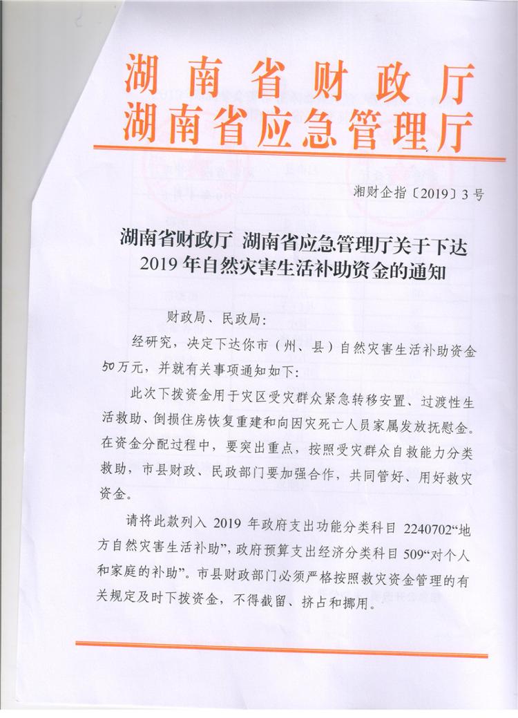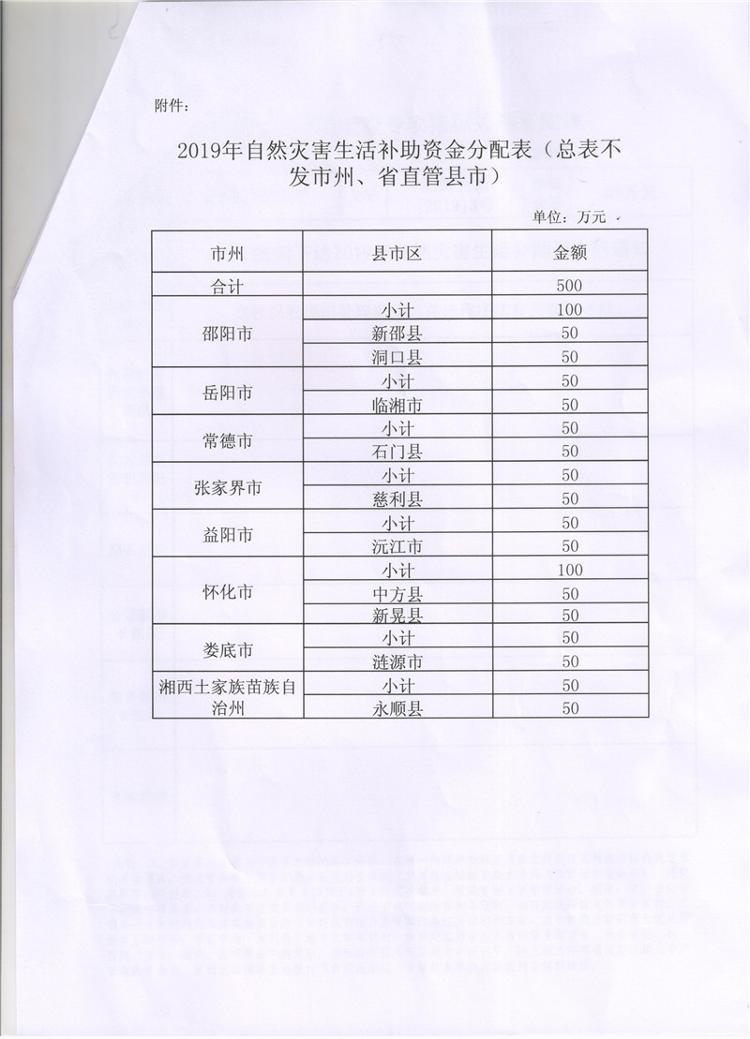 湖南省财政厅湖南省应急管理厅关于下达2019年自然灾害生活补助资金的通知