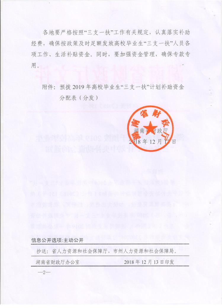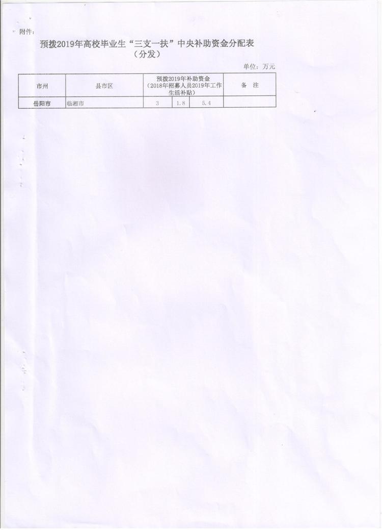 湖南省财政厅关于预拨2019年高校毕业生“三支一扶”计划中央补助资金的通知