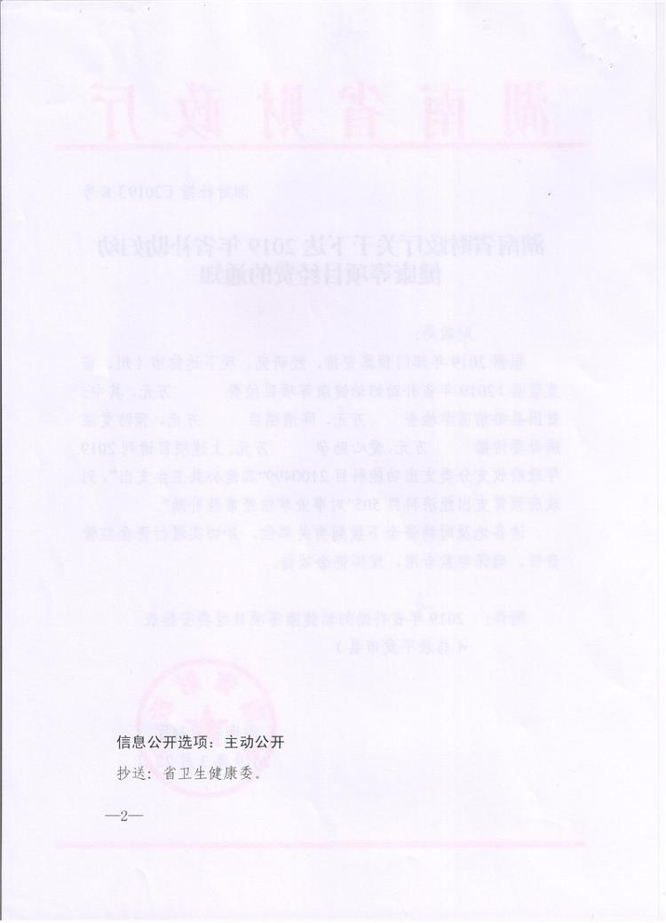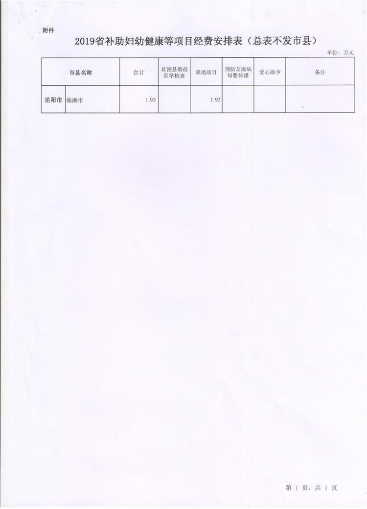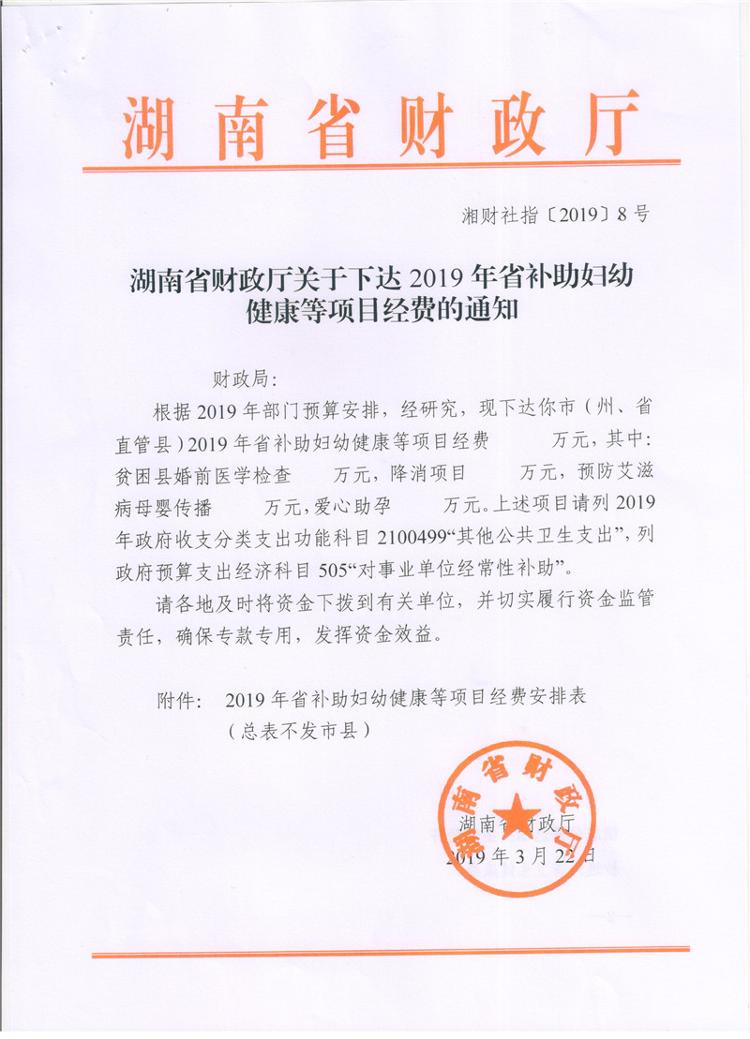 湖南省财政厅关于下达2019年省补助妇幼健康等项目经费的通知