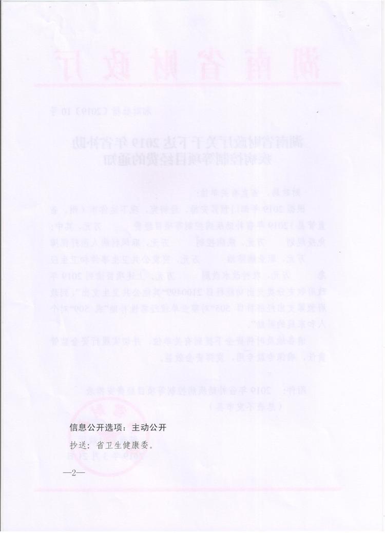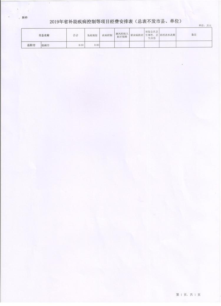 湖南省财政厅关于下达2019年省补助疾病控制等项目经费的通知
