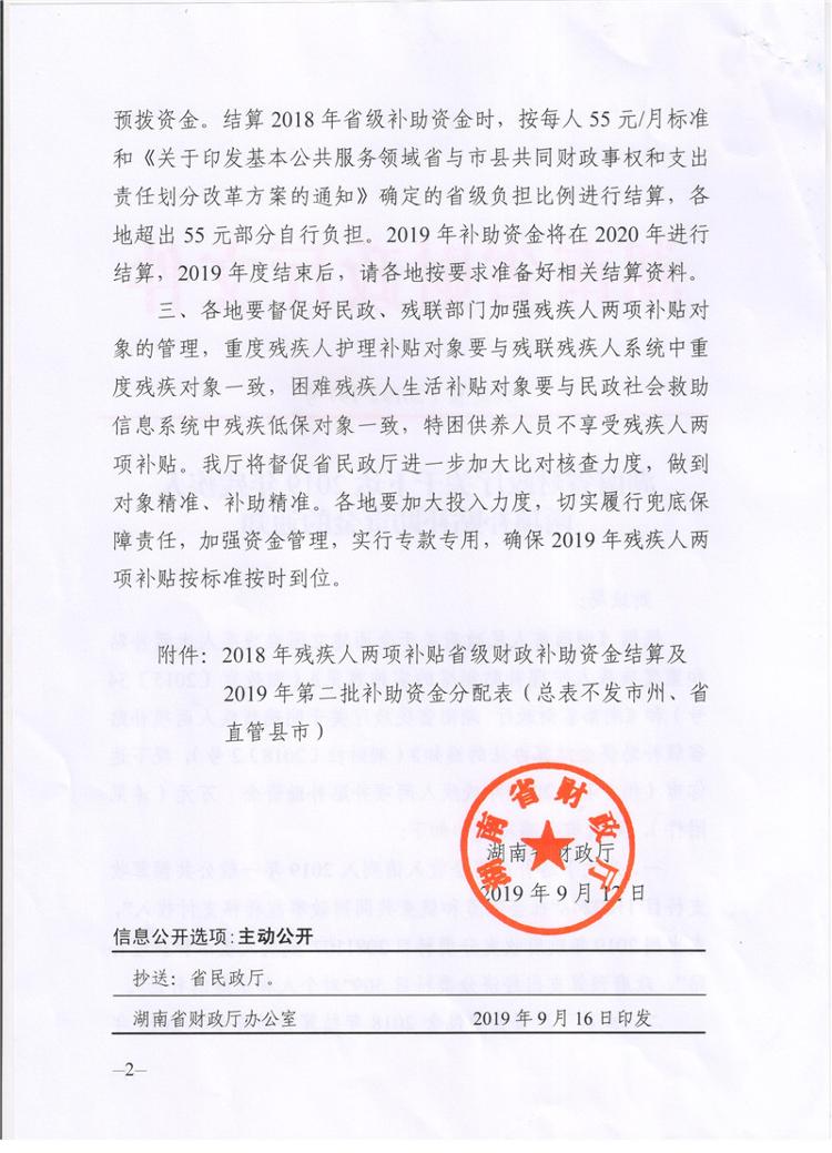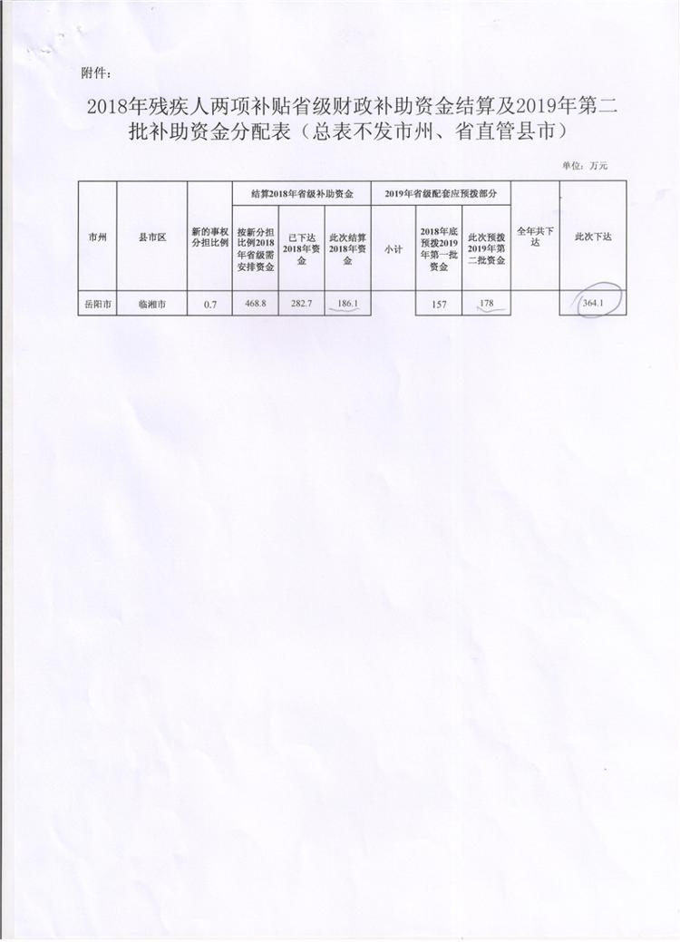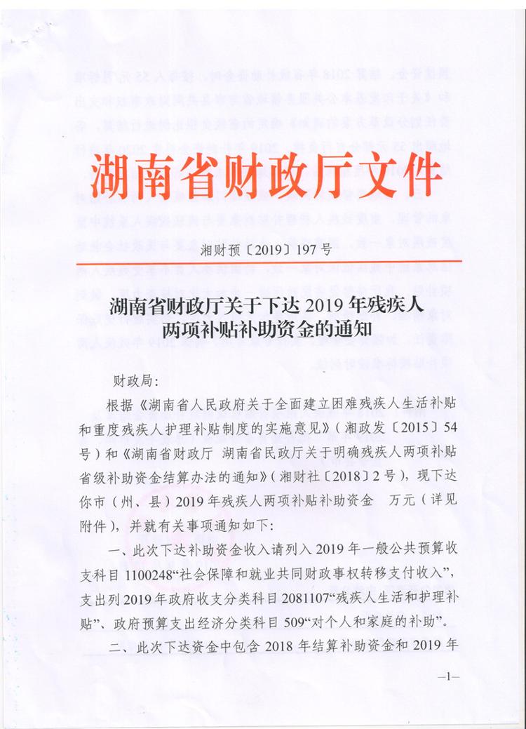 湖南省财政厅关于下达2019年残疾人两项补贴补助资金的通知