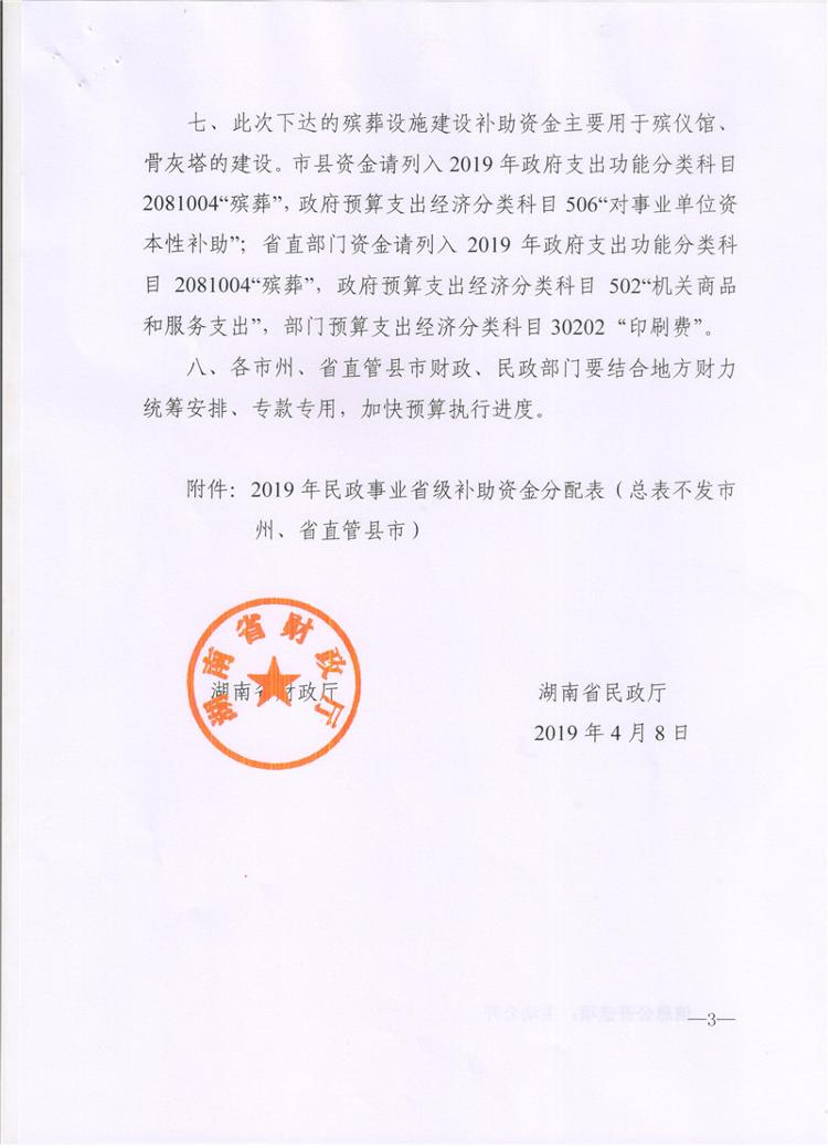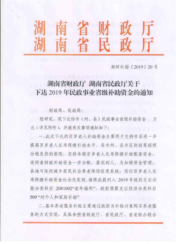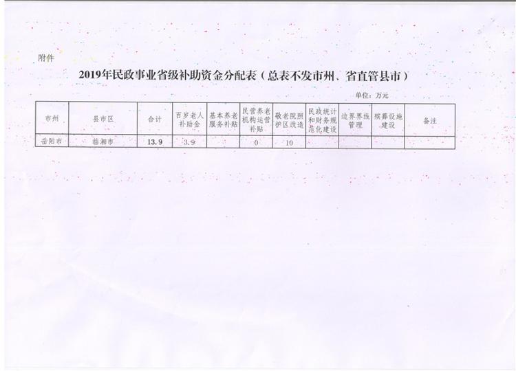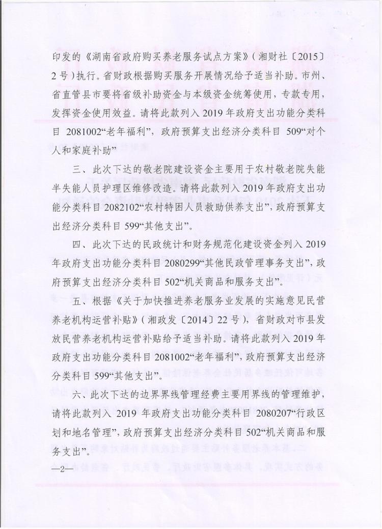湖南省财政厅、湖南省民政厅关于下达2019年民政事业省级补助资金的通知