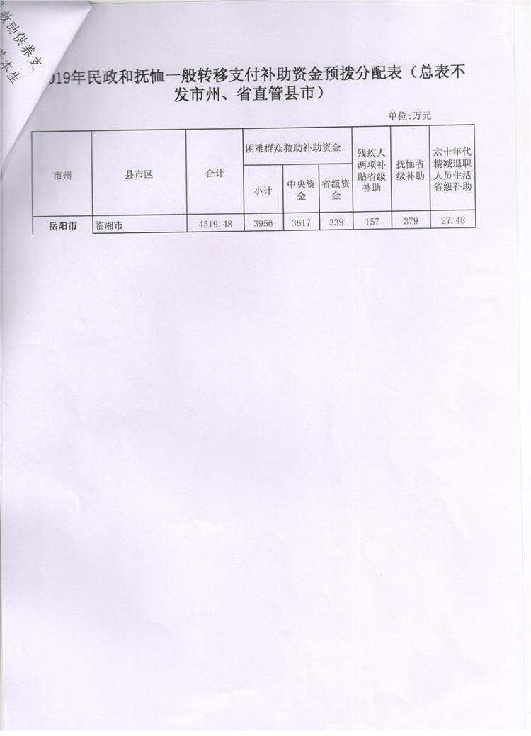 湖南省财政厅关于提前下达2019年民政和抚恤一般转移支付预算指标的通知(湘财预【2018】168号)