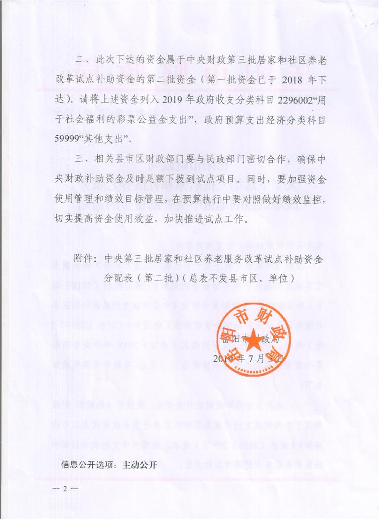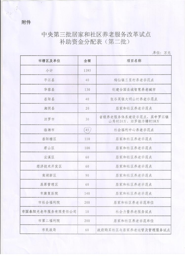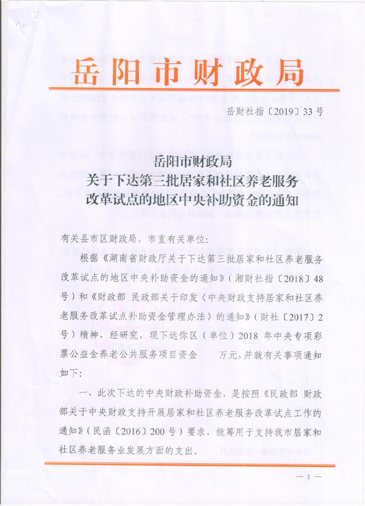 岳阳市财政局关于下达第三批居家和社区养老服务改革试点的地区中央补助资金的通知