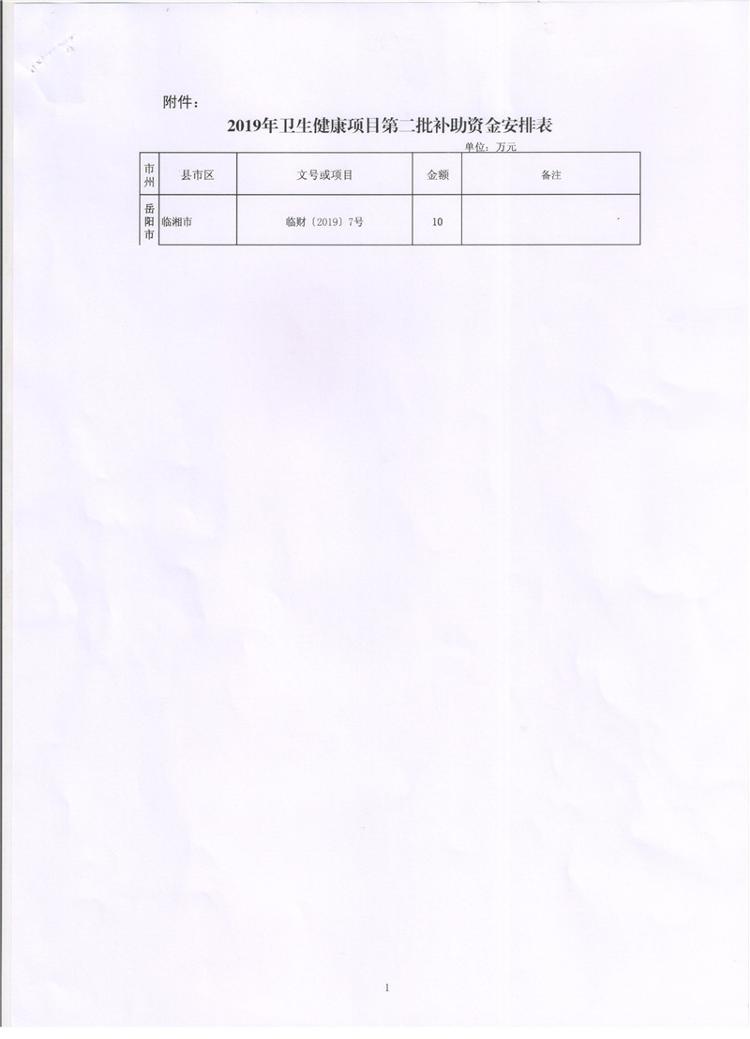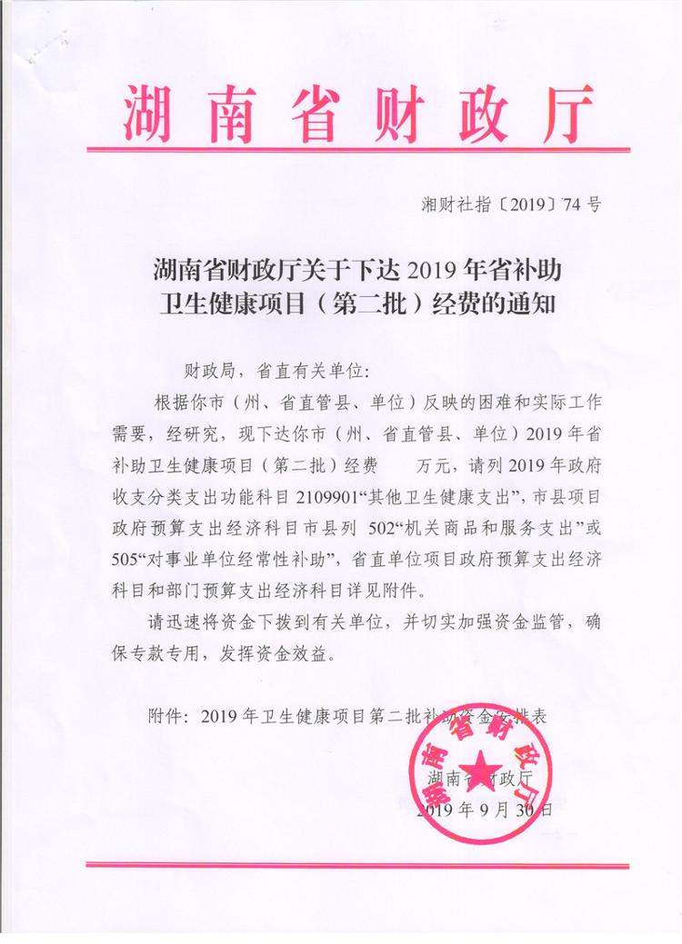 湖南省财政厅关于下达2019年省补助卫生健康项目(第二批)经费的通知