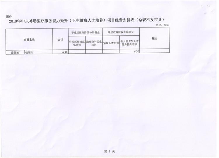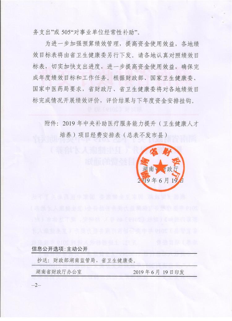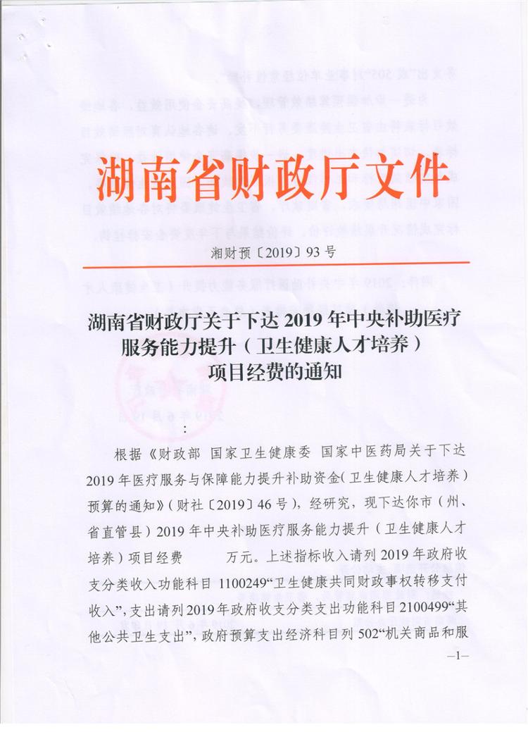 湖南省财政厅关于下达2019年中央补助医疗服务能力提升(卫生健康人才培养)项目经费的通知